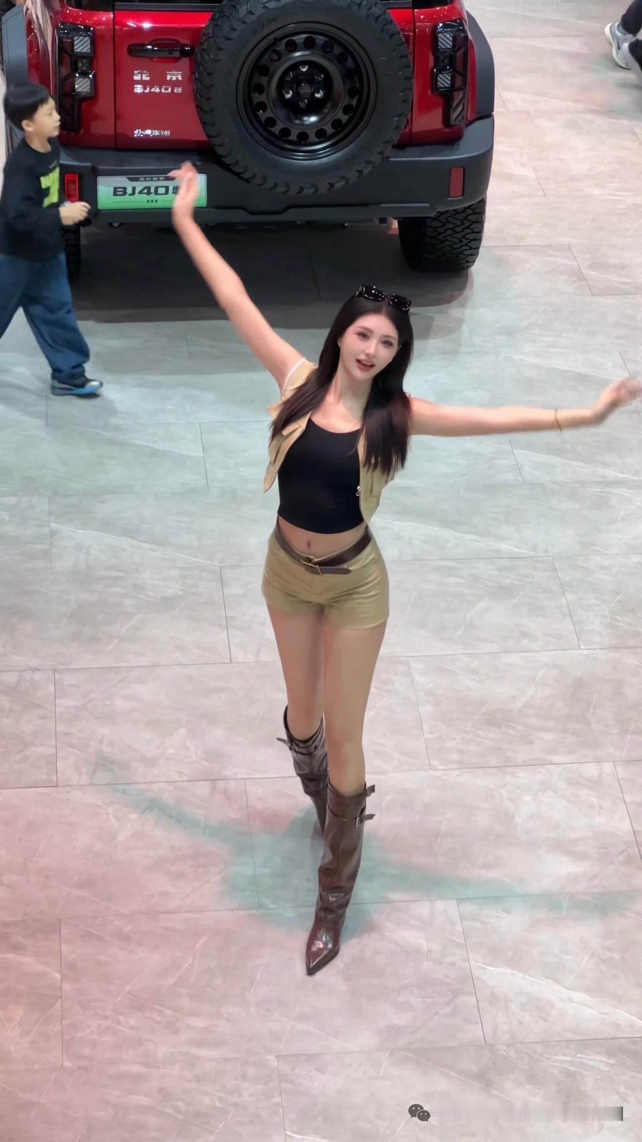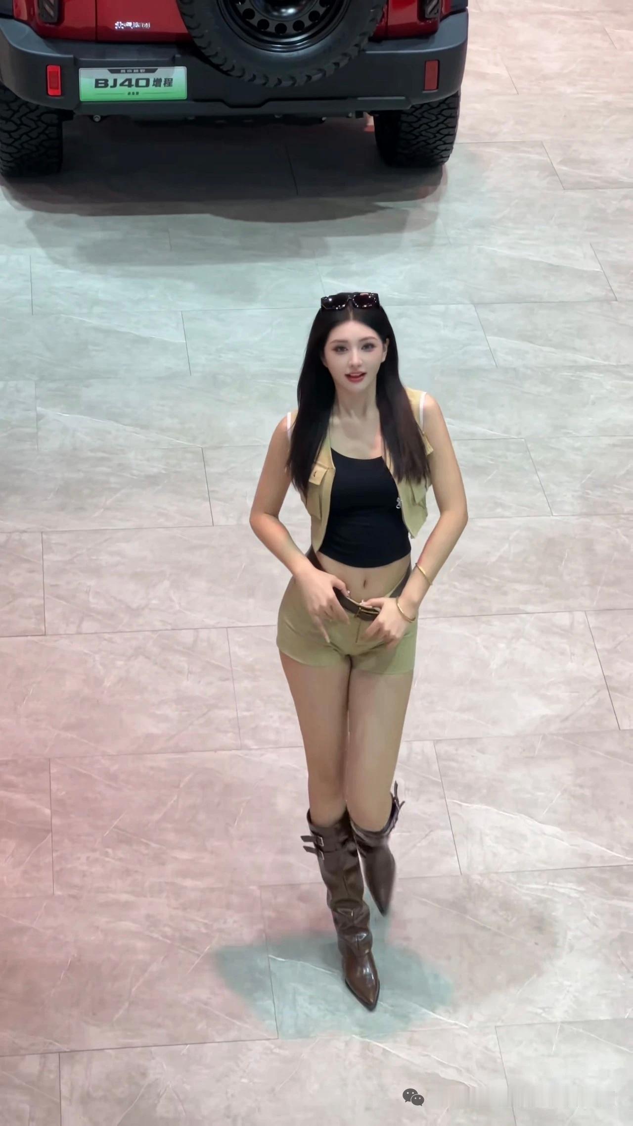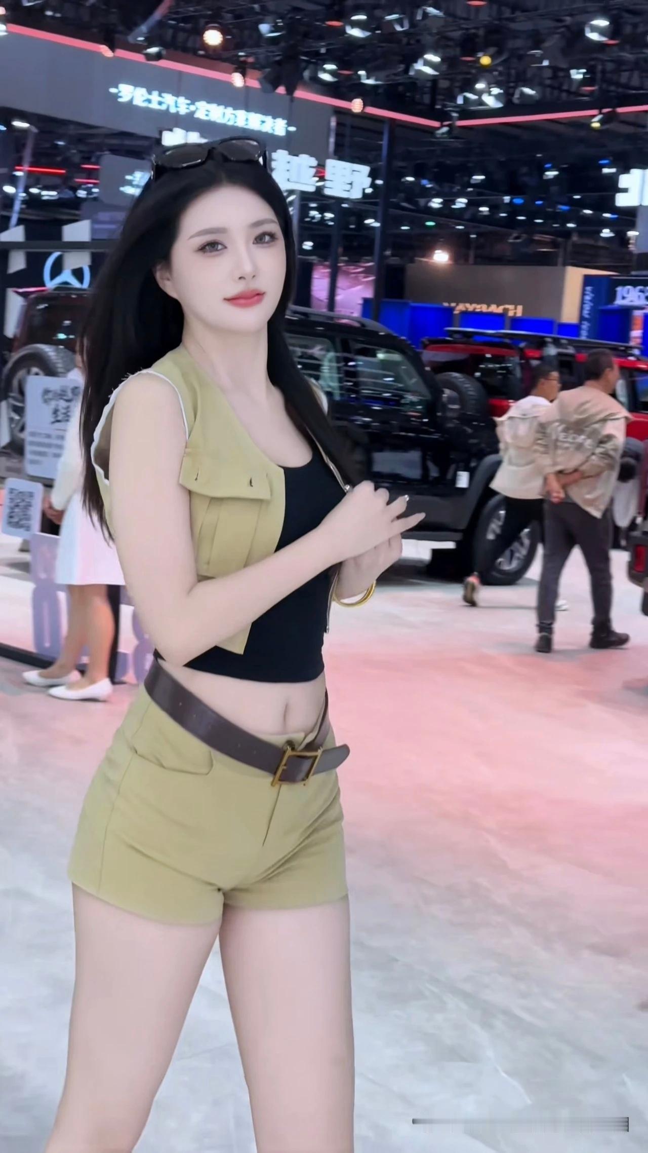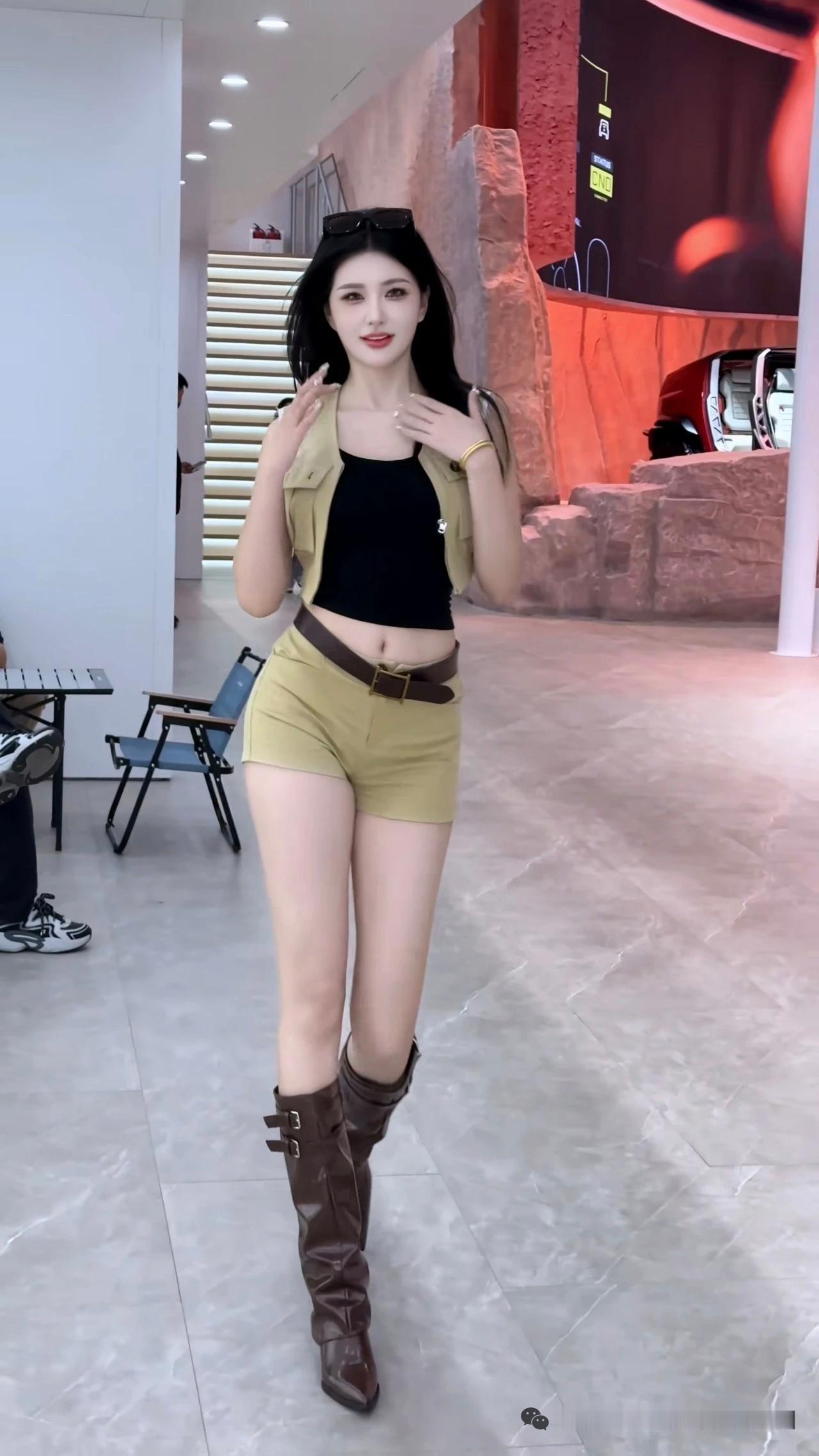 顶级网红车模依依酱:亮蓝挂脖连衣长裙生图车模小姐姐