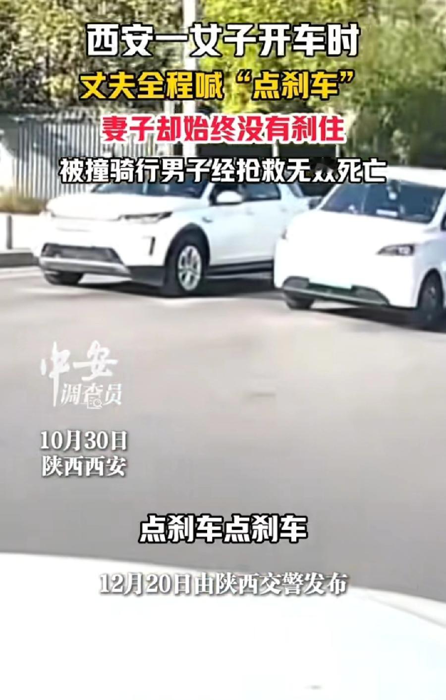 新手女司机害死人!西安女子开车失控,丈夫不停喊点刹车,结果还是迎面撞死山地车骑行男子!丈夫喊错了,女子已经本来就不会开,失控已经惊慌失措,脑子一片空白,根本不知道怎么操作了,丈夫说点刹车,女子说没有! 应该按照教小孩子那样,一步一步给口令,脚左边是刹车,抬起脚!换踏板踩!踩左边的刹车!最倒霉被撞男子,宣传还是学生,天降横祸! 悲剧警示每一个人,特别新手司机,新手女司机,一定要对自己有清醒认识!找一处空地,熟悉车操作了,有基本车感了再上路,别害人害己!