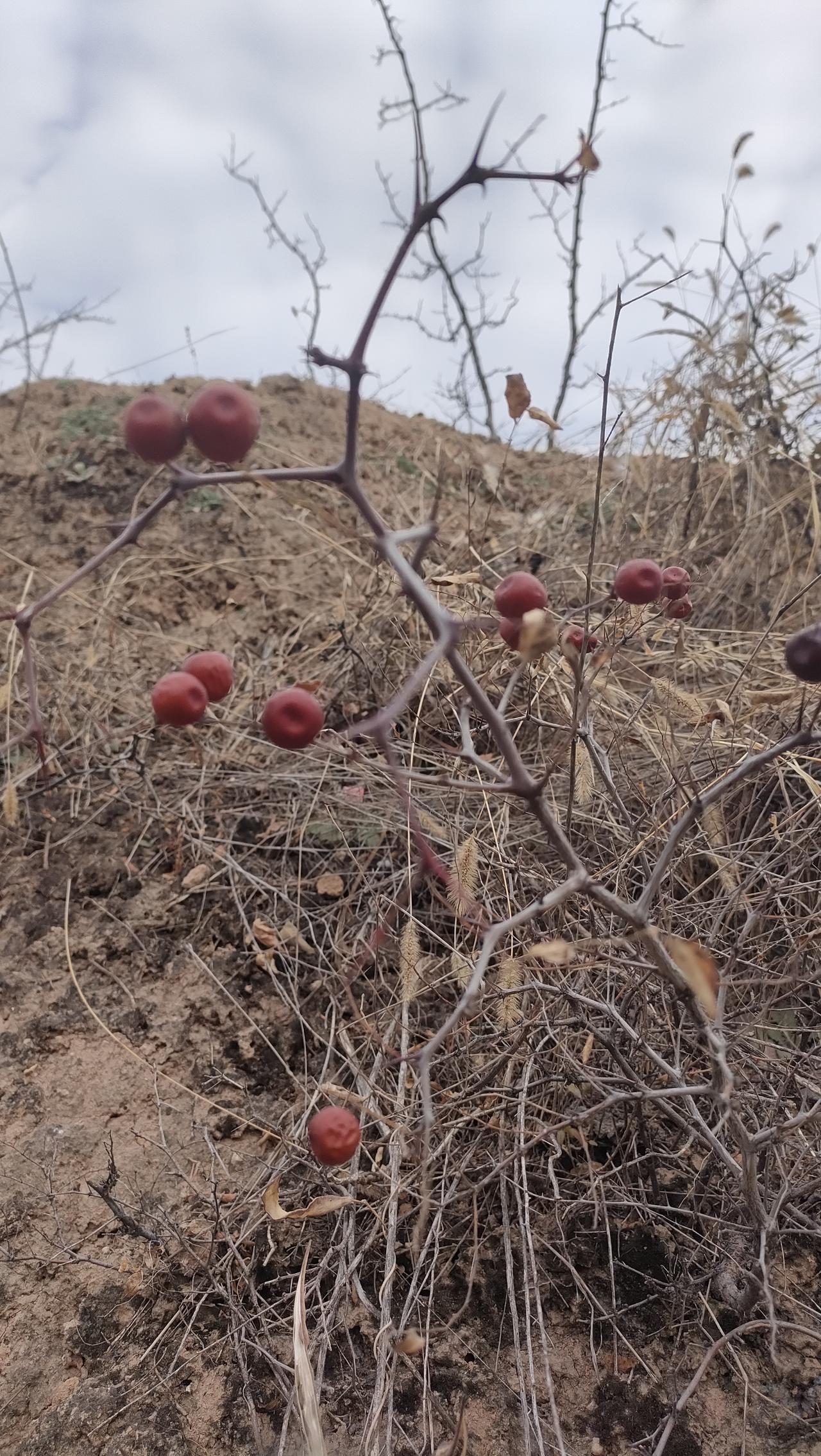 冬至日的田野,空旷而寂静。但是除了冬眠的小麦呈现绿色的生机,树上没有人采摘的柿子在寒风中缩成一团,枝头稀稀拉拉的酸枣也战略性收缩身体,总有不惧寒冷逆势而生的植物,在一片枯叶中傲然挺立,我小心翼翼地摘了一颗酸枣放入嘴中,感受一下没有枣肉的滋味,酸中滋生出一丝淡淡的甜,这可能就是生活的味道,甜味总在后边,而且需要仔细感受。