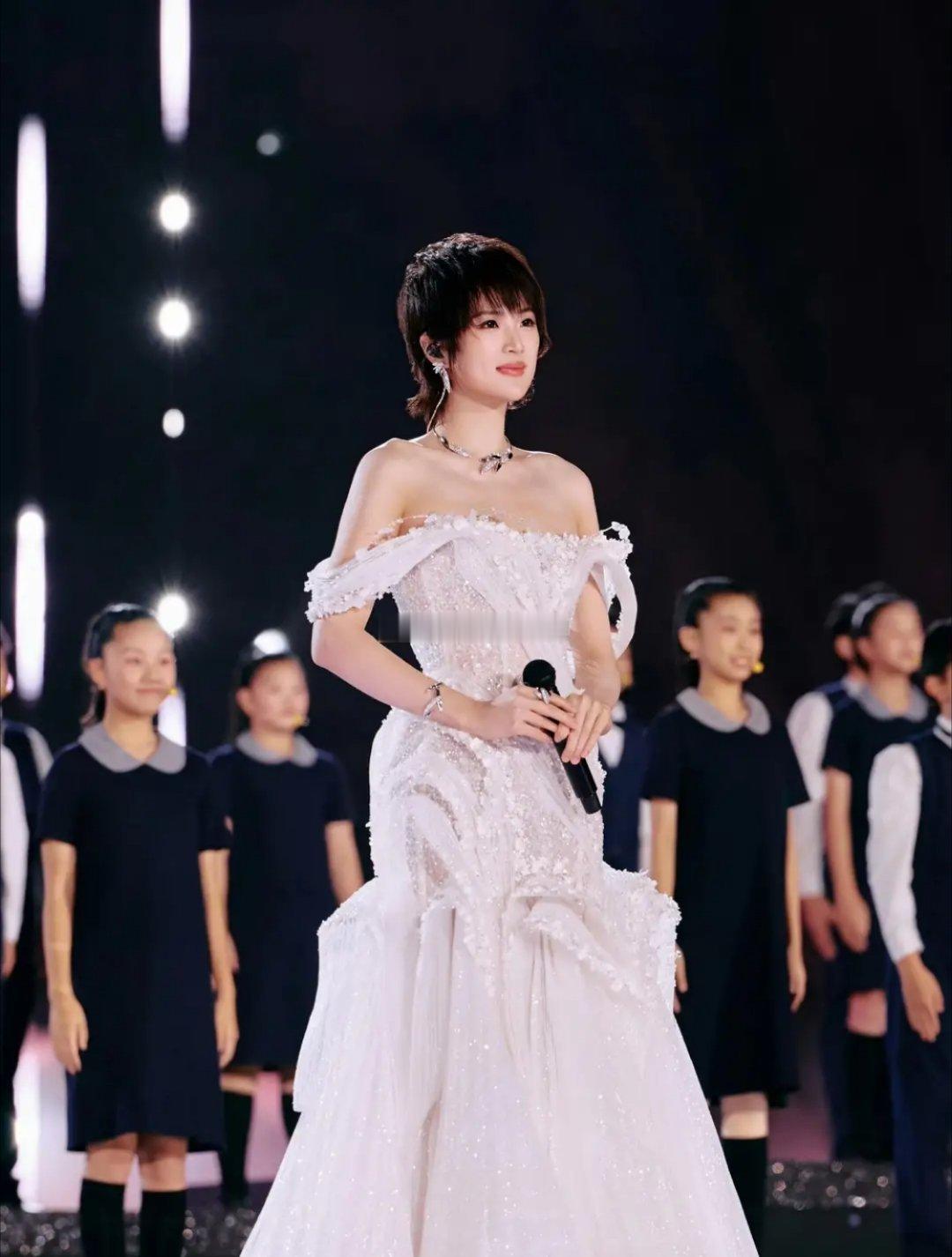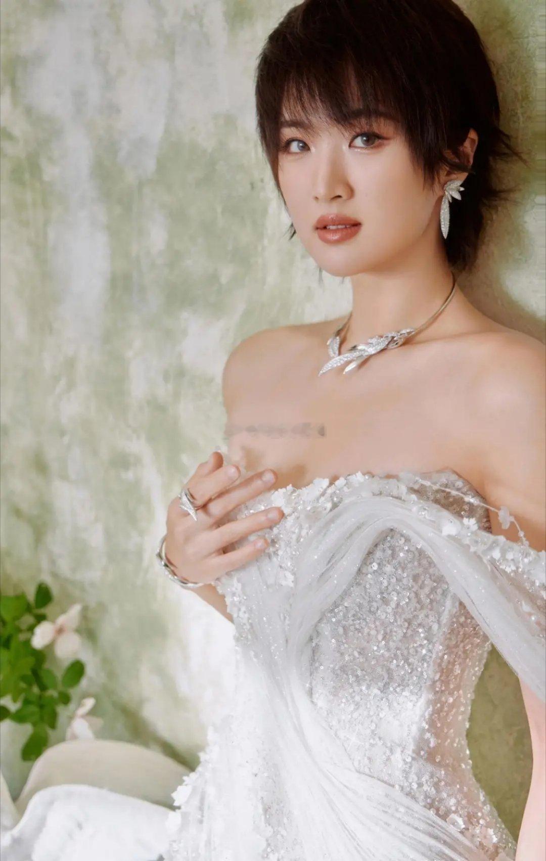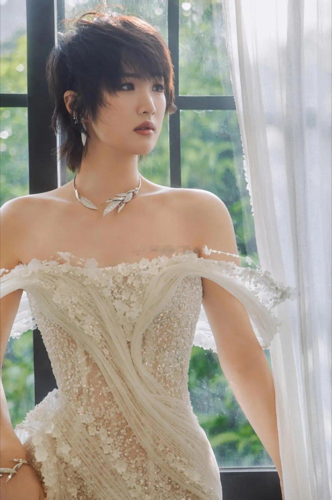 华为二公主姚安娜亮相央视鸿蒙盛典,身着白色露肩礼服裙,短发搭配尽显优雅,美出新高度。