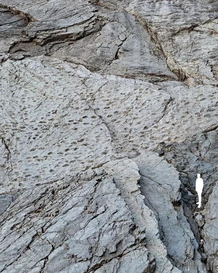 意大利发现“巨大”的恐龙足迹群③ 锋利的爪子:这些足迹目前被雪覆盖,且位于偏远地区,保存在三叠纪晚期Trias supérieur的白云岩中roches dolomitiques ,距今约2.1亿年。大部分足迹细长,由双足行走的恐龙留下。保存最完好的足迹显示至少有四个脚趾。专家推测这些足迹属于原蜥脚类恐龙,这是一种脖子长、头小的草食性恐龙dinosaures herbivores,是侏罗纪时期Jurassique巨大蜥脚类恐龙(如雷龙Brontosaure)的祖先。原蜥脚类恐龙拥有锋利的爪子griffes acérées ,成年体长可达10米。新闻稿还指出,也不排除有些足迹属于肉食性恐龙dinosaures prédateurs或鳄鱼的祖先ancêtres des crocodiles——主龙类archosaures。这些足迹如今位于几乎垂直的岩坡上,这是由于阿尔卑斯山的地壳抬升所致。而在恐龙活动的年代,这一地区是一片广阔的潮湿泥滩,气候为热带。“这些足迹是在沉积物sédiments仍然松软、含水的时期形成的,位于特提斯洋océan Téthys周围的大型泥滩上,”古生物足迹学家法比奥·马西莫·佩蒂Fabio Massimo Petti在新闻稿中解释。“这些极细的石灰质泥土boues calcaires具有极高的可塑性,如今已转化为岩石,在一些地方依然保留了极其精细的解剖学细节,比如脚趾印,甚至是爪痕,”他补充道。足迹随后被沉积物覆盖得以保存,直到阿尔卑斯山的地壳抬升以及山体侵蚀使它们重新出现在地表。“由于包含足迹的岩层种类多且层层叠加,我们拥有一个独特的机会,可以研究这些动物及其环境随时间演化的过程,”地质学家法布里齐奥·贝拉Fabrizio Berra在新闻稿中指出。这就像是在阅读“一本由岩石写成的书”。