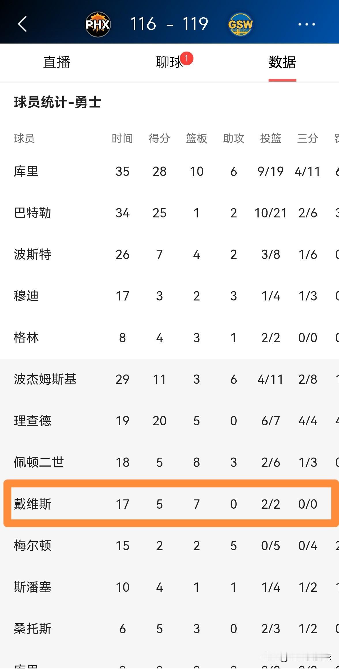 勇士年轻中锋TJD终于又受重视了!在今天勇士主场以119:116力克太阳的比赛中,TJD得到了17分钟的上场时间,并且发挥出色。 全场比赛下来,TJD替补出战17分钟,投篮2中2,其中罚球3中1得到5分7篮板(包括3个前场篮板)1盖帽。 对于TJD来说,他必须抓住这来之不易的机会,不然的话他很有可能会被球队送走。
