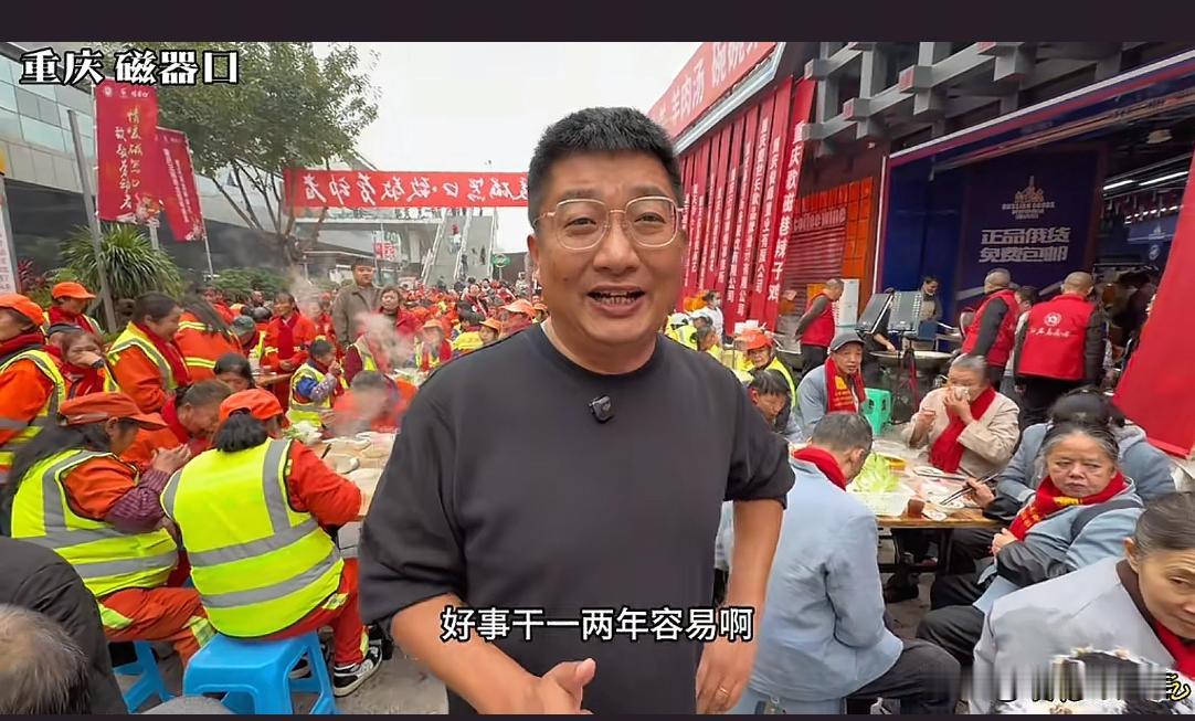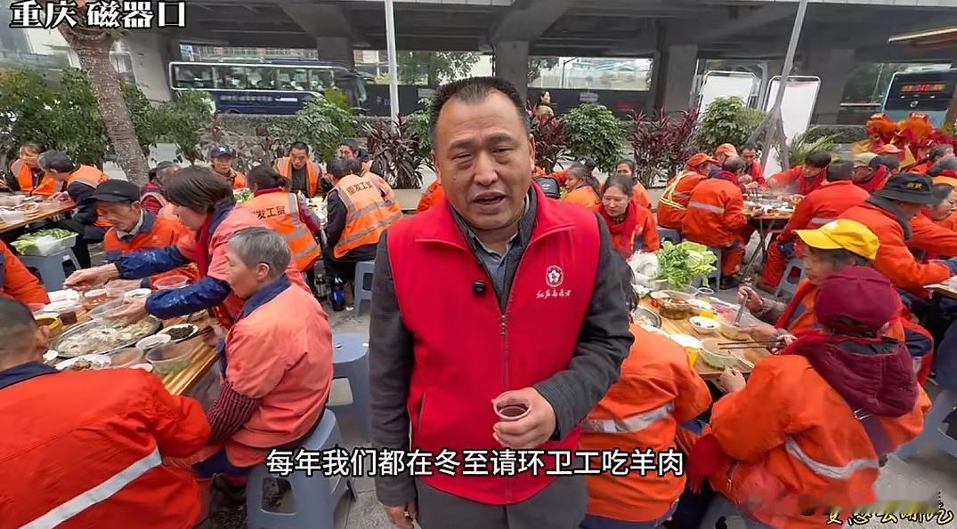 重庆人冬至不吃汤圆,也不吃饺子,而是吃羊肉,这基本上已经成传统了。这本就另外地人惊奇,但更令人惊奇的是:重庆有一位姓张的大哥,在冬至之前一天请了1000名环卫工人吃羊肉汤锅!如果你以为他是哗众取众或是为了宣传,那就错了,因为他冬至请环卫工请羊肉的行为,已经做了21年!做好事、搞活动做个一两年容易,但要坚持做21年,那就真的不容易了!对他这种行为,有些人说他是“zhua棒”(莽、憨傻的意思),因为每次的花销都不低,光成本都要大几万块钱。但他无以为意,他说自己在做对的事情,不需要管别人怎么说。那一盆盆端上餐桌的羊肉汤,看上去奶白奶白的,锅里煮了四斤羊肉和羊杂,看上去既好吃、量又足。师傅说这羊汤熬制了十个小时,非常鲜美。但这锅羊汤在我们看来,它已经熬制了整整21年,吃到嘴里,不但味美身暖,心里更暖!“莫以善小而不为,莫以恶小而为之。”这是千年的古训。古代的善人修桥铺路、造福桑梓,今天像张大哥这样的,在能力范围内照顾弱小,这既是美德的传承,也是和谐社会的榜样。一顿饭对现在的人来说,不算什么;但那颗对底层人士的关爱之心,非常宝贵!祝所有人冬至快乐!也祝张大哥这样的人百事顺遂!