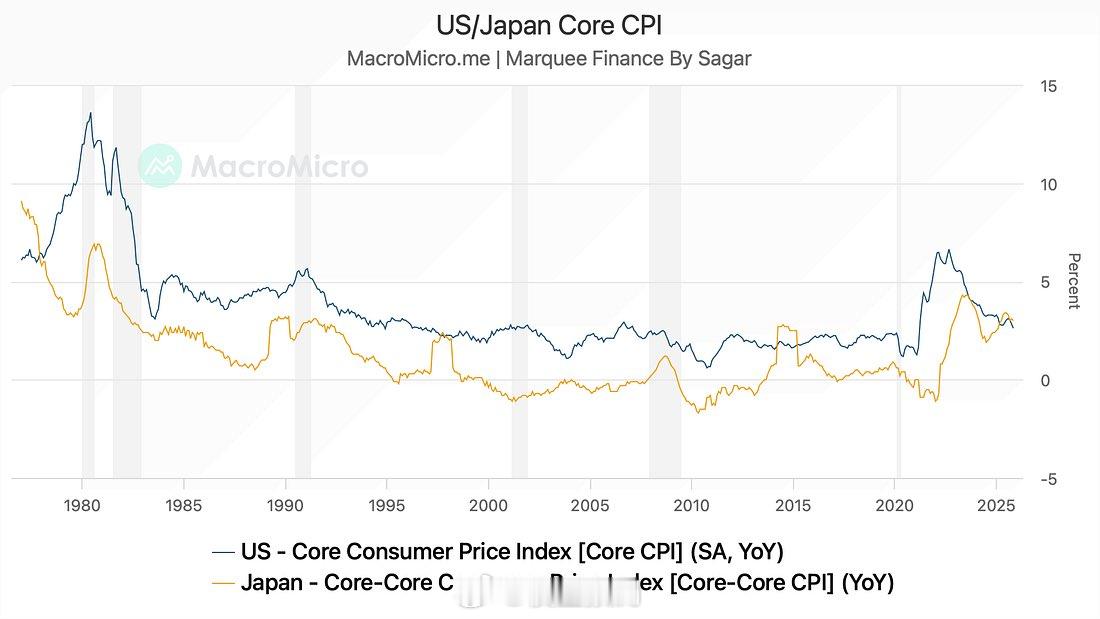 得加息!日本通货膨胀率自 1979 年以来首次超过美国通货膨胀率。