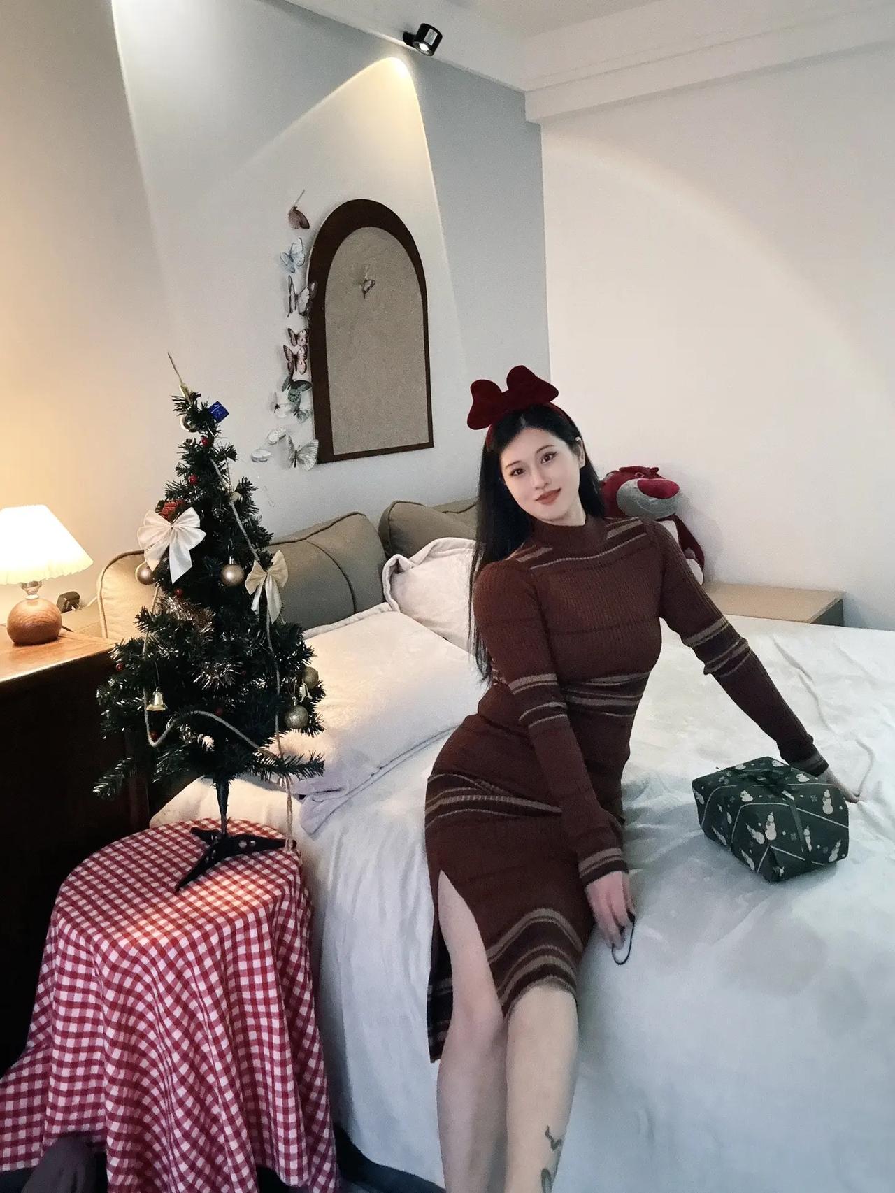 圣诞氛围满满的卧室,可爱的圣诞树和毛绒玩具,搭配温馨的灯光,让人感到温暖和幸福。