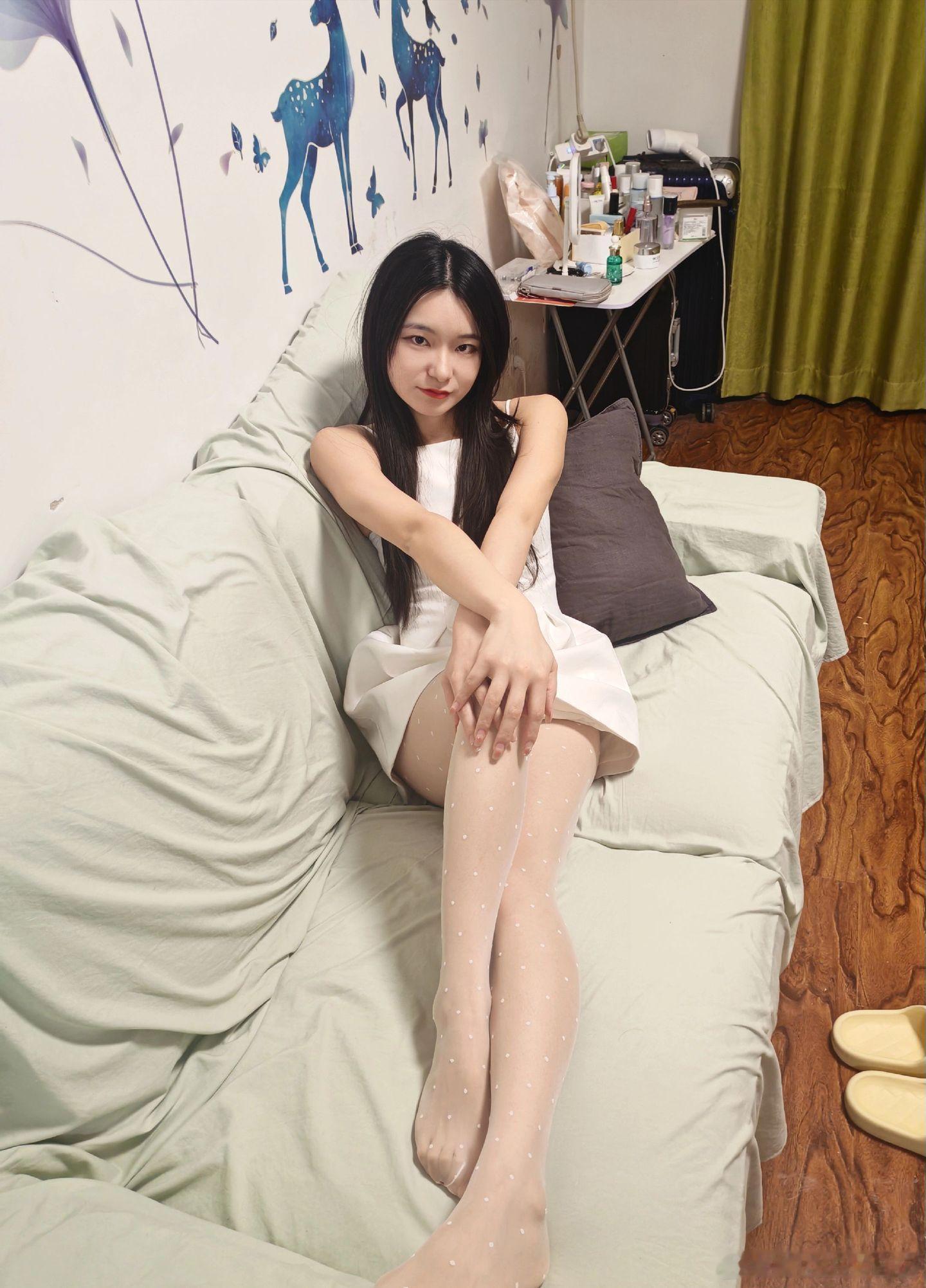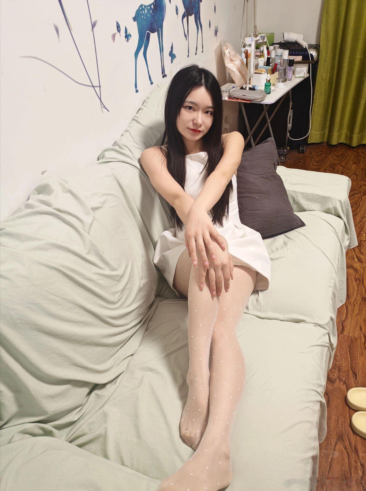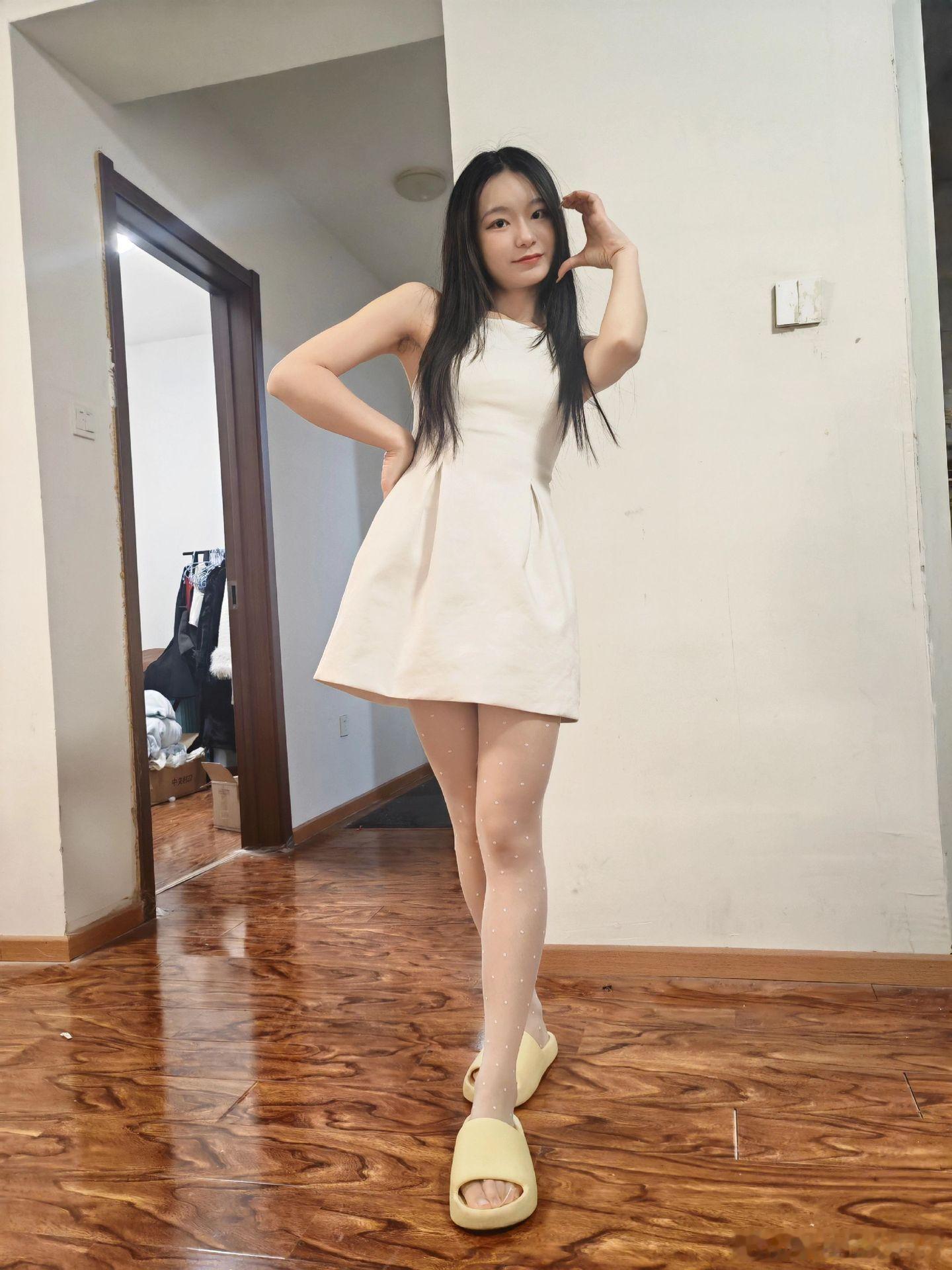 美女如云初夏女神的白色波点美女绘梦长廊
