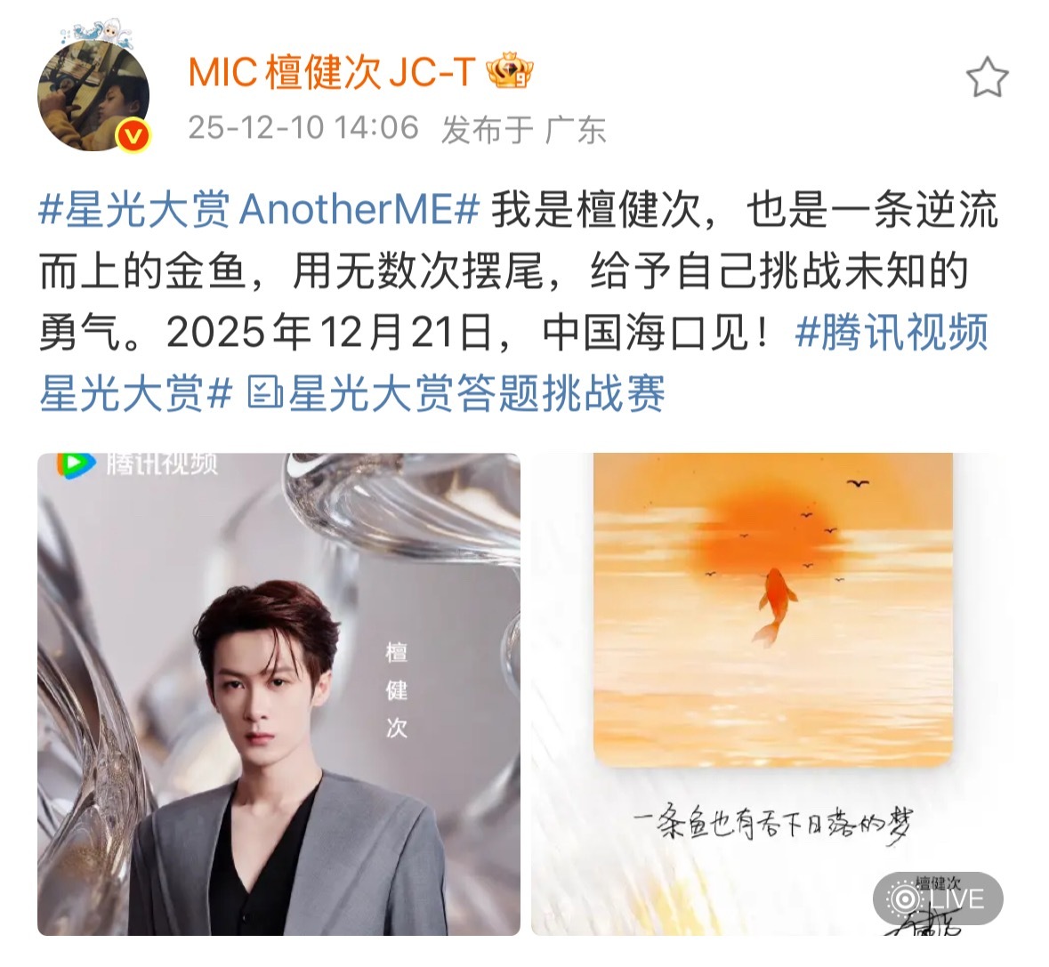 檀健次星光大赏出发图水准真的太高了表现力和审美双在线,还扣了前面星光大赏预热里提到的“金鱼”,是真的很用心了,关键还是自己的创意,硬照表现这么绝就应该早出图~星光大赏出图