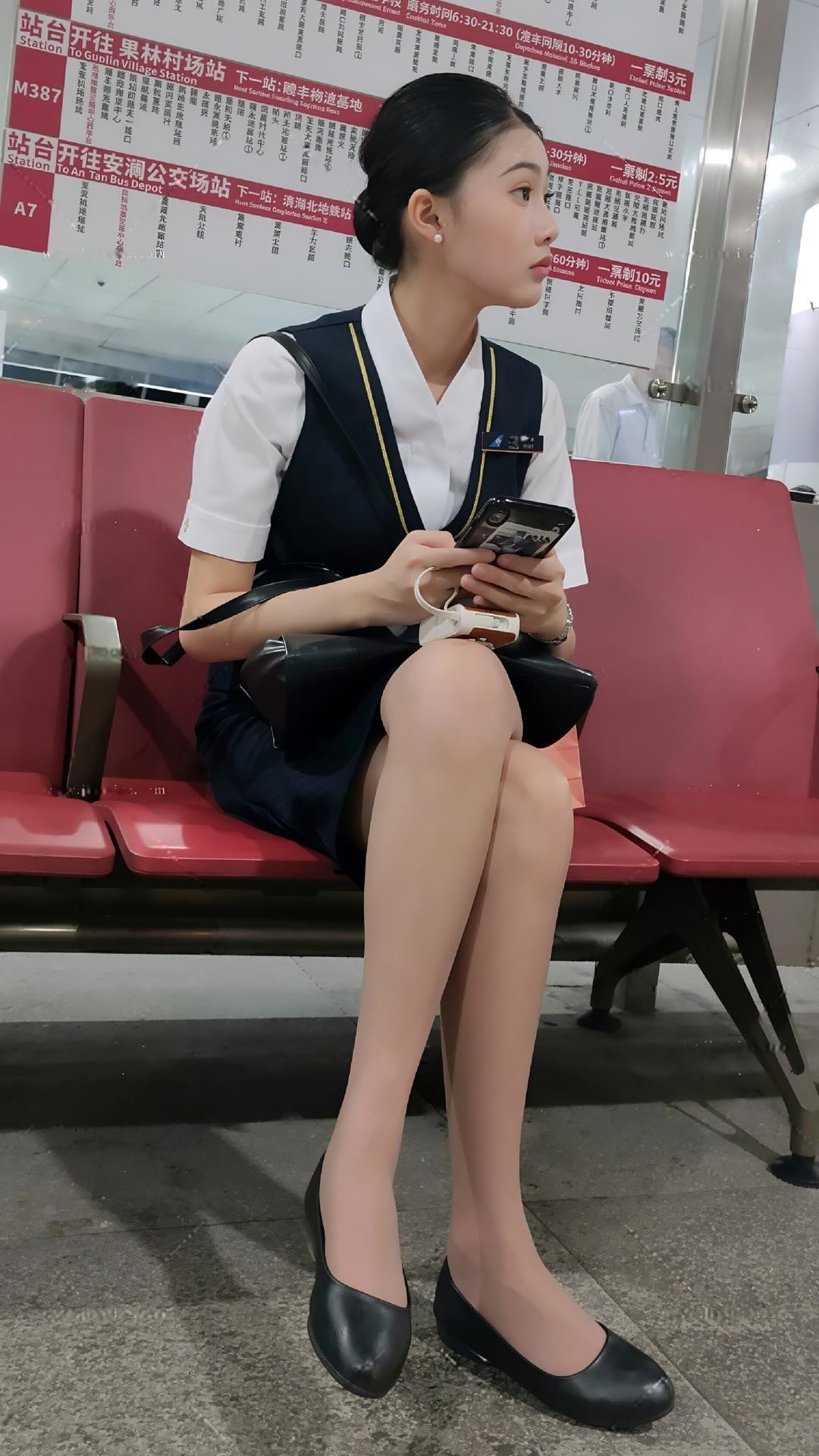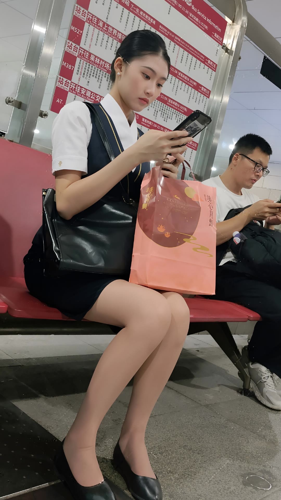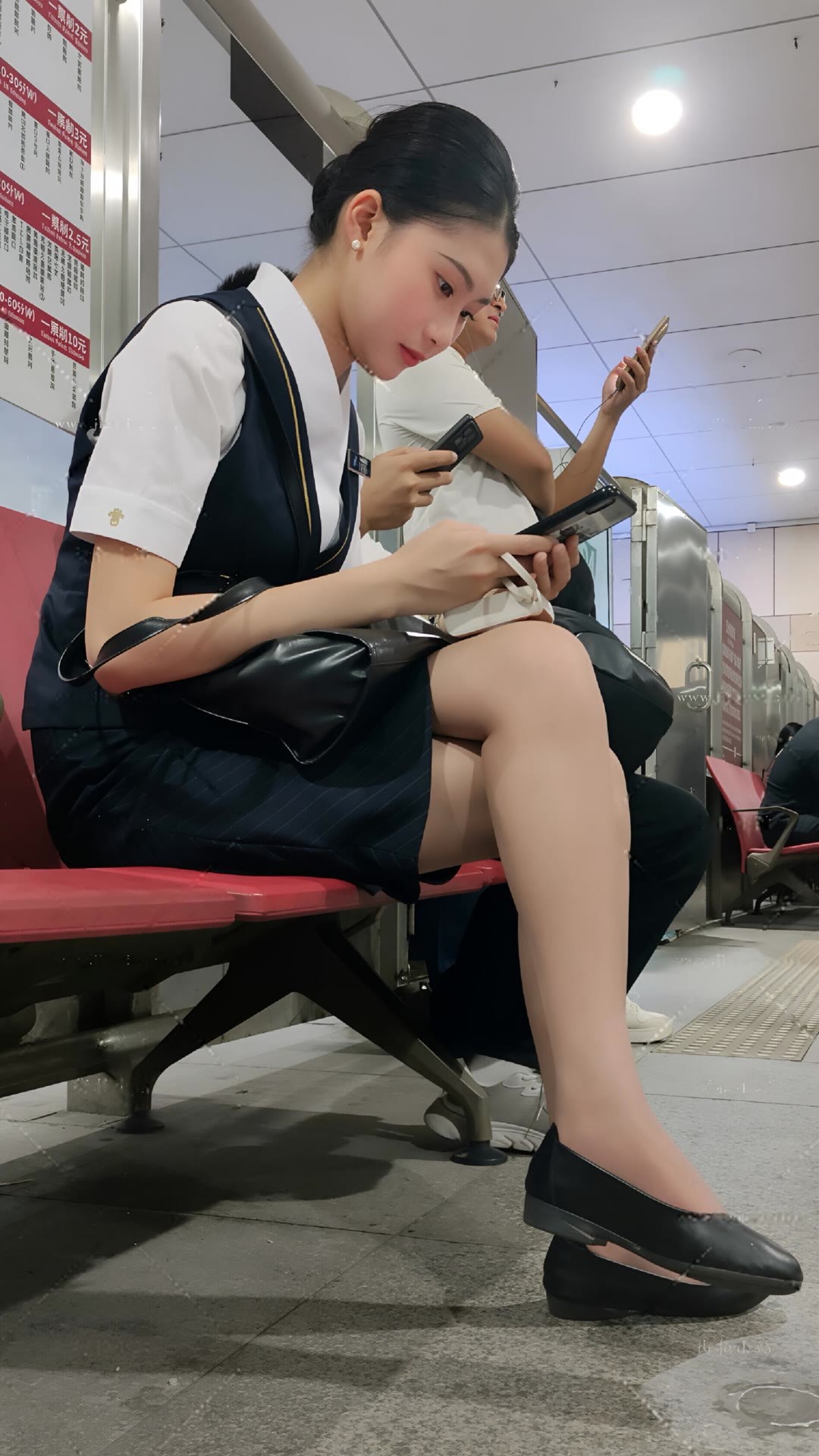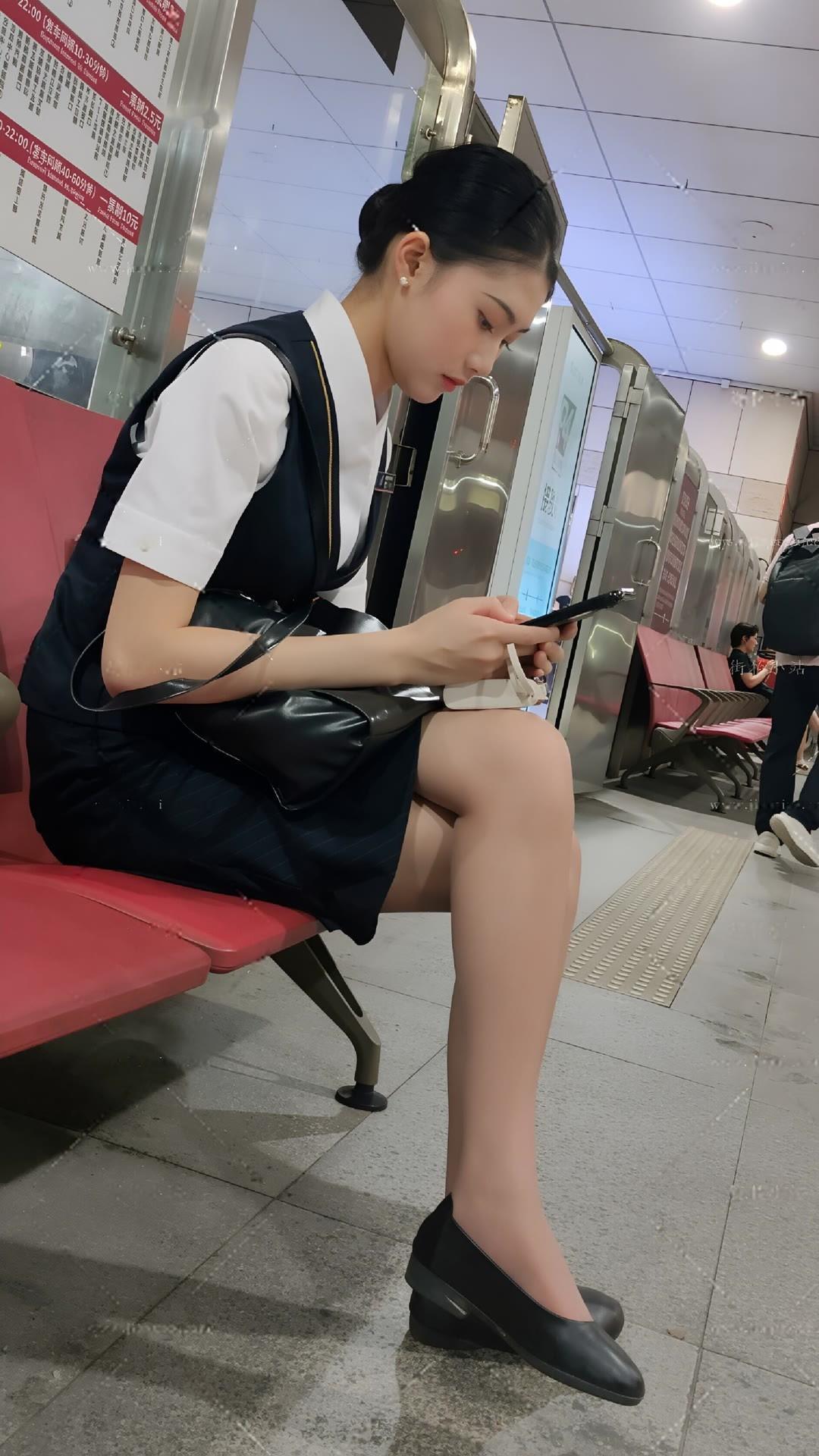 白衬衫配深色马甲短裙,搭肉色丝袜与黑平底鞋,职场通勤优雅利落。每日穿搭