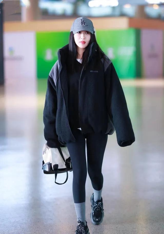 李菲儿机场私服太会穿,松弛感时髦精本人 李菲儿的机场私服穿搭也太有范了!oversize的黑色摇粒绒外套慵懒又保暖,内搭纯黑修身打底,上宽下紧的搭配完美勾勒出纤细腿型,一秒打造出随性的街头风。 灰色棒球帽和中筒袜的细节呼应,再踩一双老爹鞋,整体造型简约又不失设计感,把舒适与时髦平衡得恰到好处,这松弛感谁看了不心动~