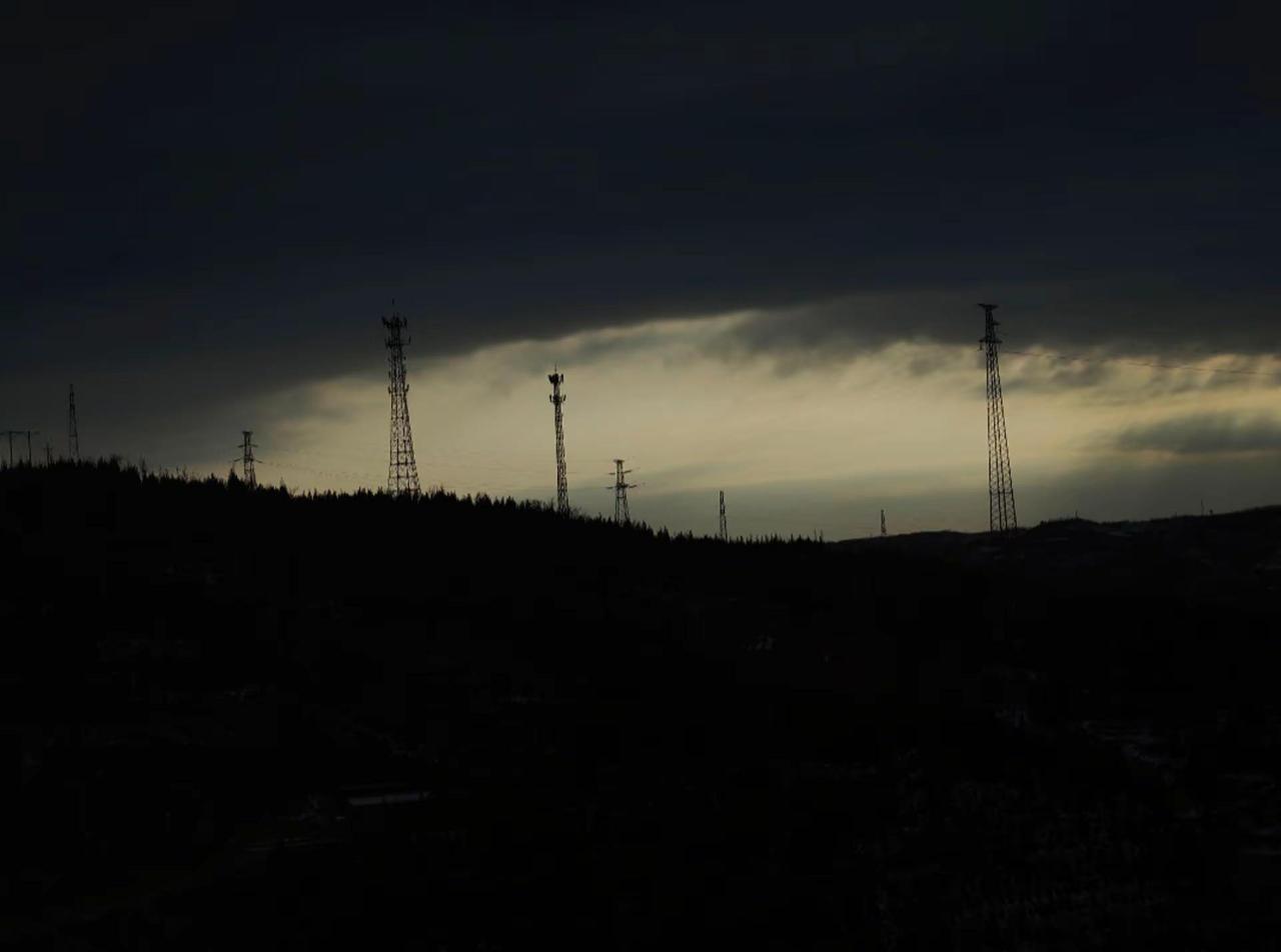 🌅 黄昏下的铁塔群也太酷了!⚡️ 你知道它们默默支撑着多少信号吗?🌿 山与塔的剪影,藏着科技与自然的对话~