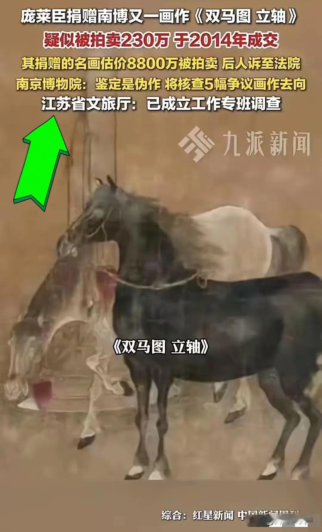 终于传来好消息! 当年庞家捐给南京博物院另外四幅失踪的名画,其中的《双马图轴》已经有了下落,据悉是在2014年就已经被拍卖了,当时是230万成交的。 但这消息听着高兴,细扒下来全是让人堵得慌的细节——这可不是单一事件,1959年庞家捐给南博的137件(套)“虚斋”旧藏里,足足有5件藏品没了踪影。 这5件里有仇英《江南春》、赵光辅《双马图轴》这些实打实的名作,南博说它们在1961年、1964年两次被鉴定成“伪作”,上世纪90年代按规矩“调剂”给了省文物总店。 可1964年那波鉴定挺让人纳闷,鉴定组里的徐沄秋是南博的征集人员,压根不是专业书画鉴定的专家,关键的鉴定记录还被遮遮掩掩,打了一大堆码,翻来覆去就几个“假”字。 《江南春》的经历更让人摸不着头脑,2001年被个“顾客”以6800元买走,2025年居然在北京拍卖预展露了面,估价直接冲到8800万元,最后因为有人举报才撤拍。 庞家后人早就在维权了,2014年就因为南博策展人说的不当言论赢了官司,2024年正式起诉后,2025年6月去核验才发现这5件藏品没了下落,到现在都没拿到完整的流转记录。 《博物馆藏品管理办法》明明要求,处置文物得报批还得谨慎处理,可南博既没通知捐赠的后人,也说不清楚部分藏品到底去了哪,就一句“按规定处置”打发人。 2025年12月的时候,江苏省文旅厅成立了工作专班,国家文物局也已经介入调查,相关进展能查国家文物局官网或者文旅厅的通报,官方说了查实有违法违规行为肯定严肃处理。 捐赠者掏心掏肺献出的文化瑰宝,本该被好好守护着,哪能成了流程模糊的流转品?这份跨越几十年的信任,可不能被一堆疑点给辜负了。 各位读者你们怎么看?欢迎在评论区讨论。
