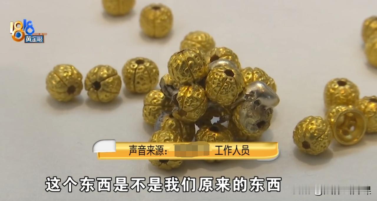 浙江杭州,女子将几件金饰拿去熔炼,谁知工作人员在剪开时,发现里面居然含有锡,并非