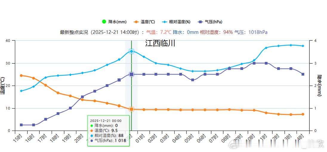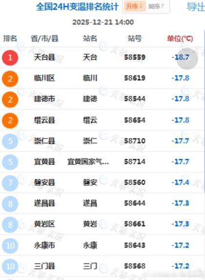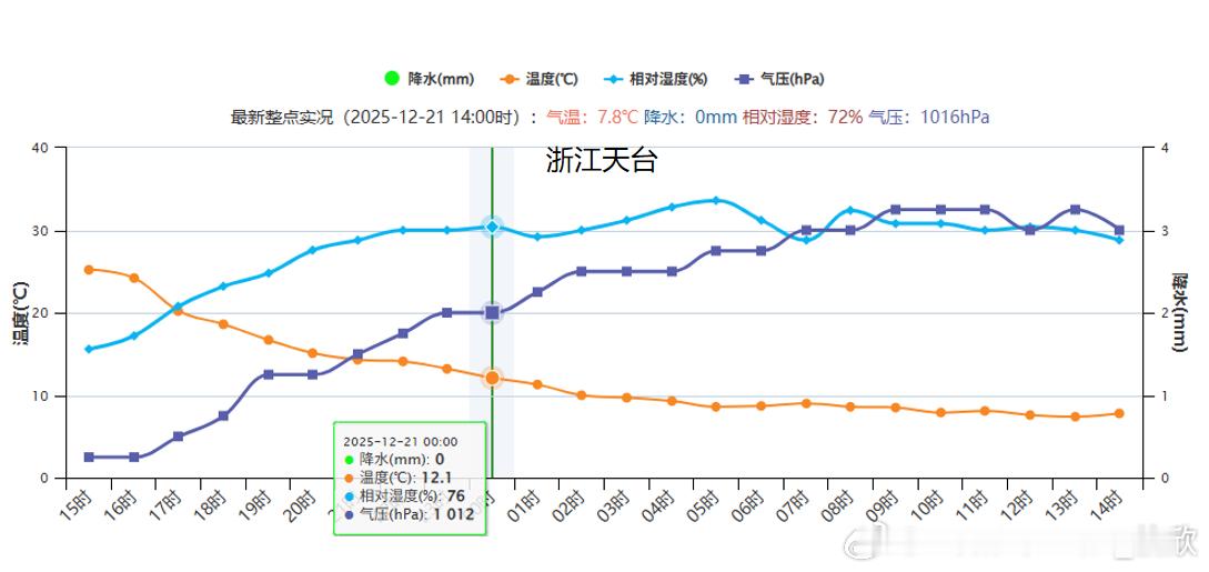 【降温】今天冷空气东移南下,东北地区东部、江南多地出现明显降温,江西浙江多地降温超15℃。浙江天台降18.7℃、江西临川降17.8℃,为两省14时降温最强站点。昨天下午25℃+,今天下午不到10℃。而且从逐小时气温走势看,两个站点均出现了气温倒降的情况,下午气温低于凌晨。