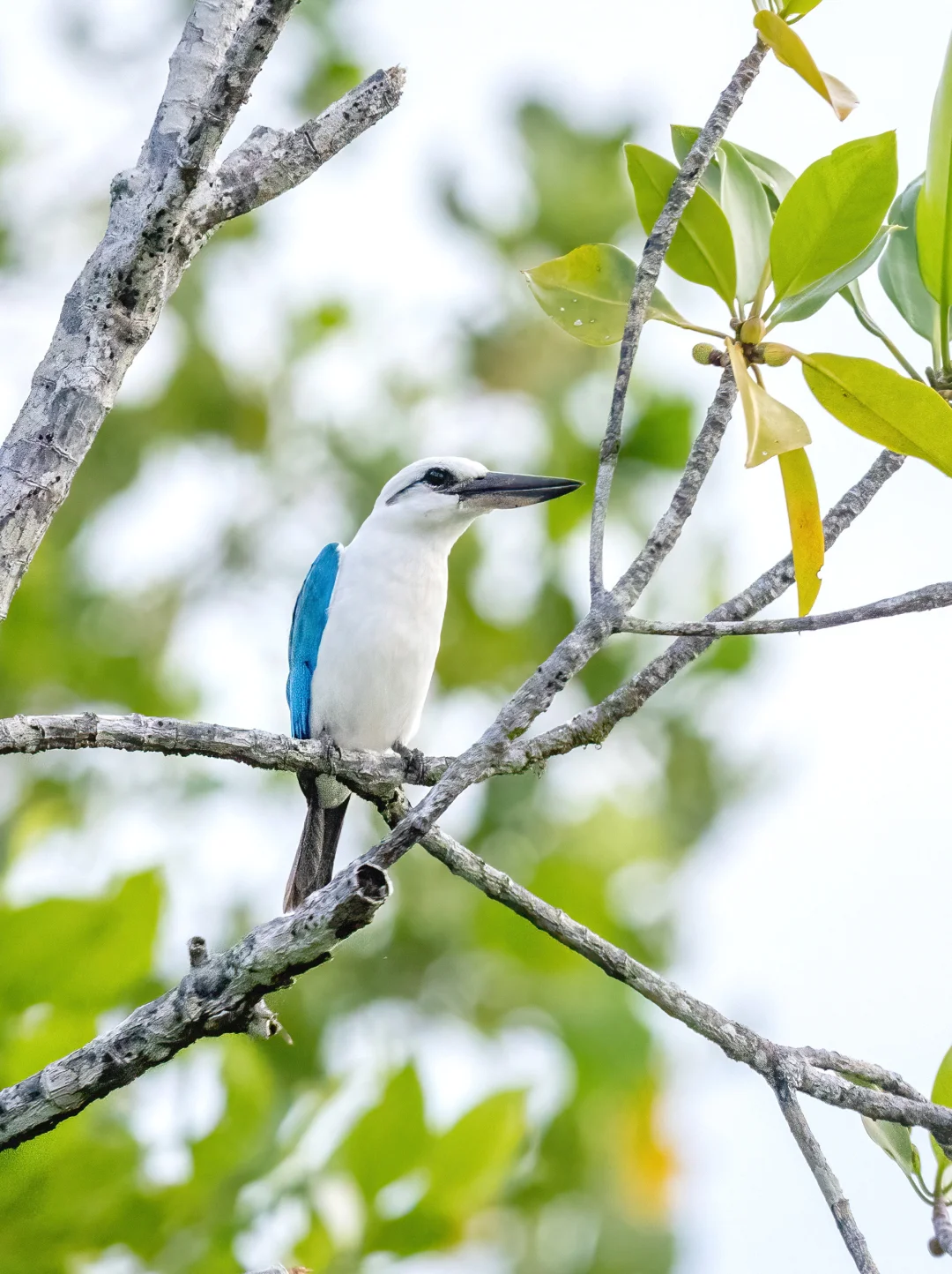 原创拍摄 白头翡翠,Beach Kingfisher,佛法僧目翠鸟科林翡翠属。英文名字直译是“沙滩翡翠”,这是一种栖息于沙滩上的翠鸟,包括一些岩岸,岬角,红树林,看来是个享受型翠鸟。 白头翠鸟蓝白色调和白领翡翠相似,不过它们干净的白色头部非常醒目,加上黑色眼后纹,和白领翡翠有所区别。分布区域基本上和白领翡翠不重合。 白头翡翠分布于印尼摩鹿加群岛至俾斯麦群岛和所罗门群岛的海岸地区。拍摄于西巴布亚。