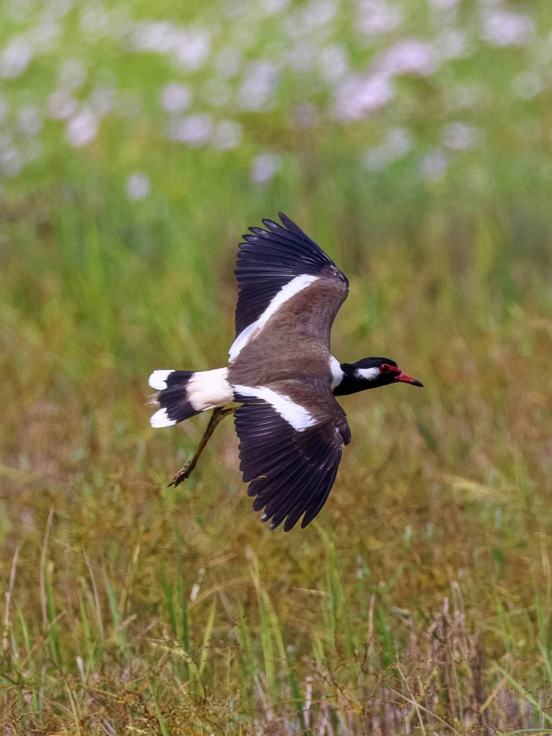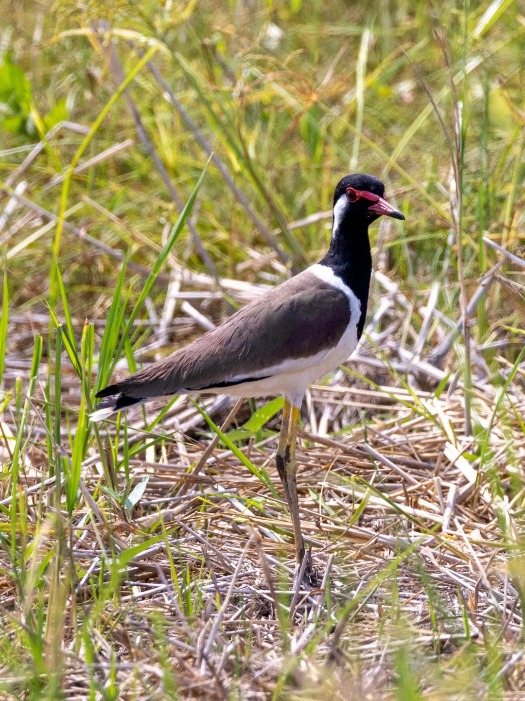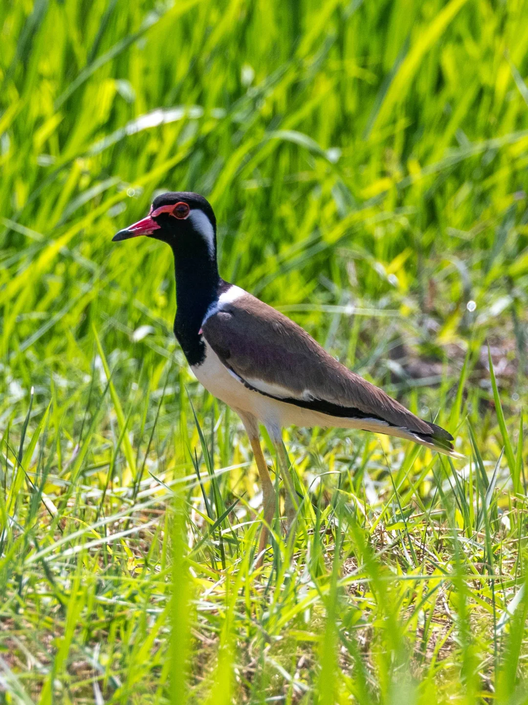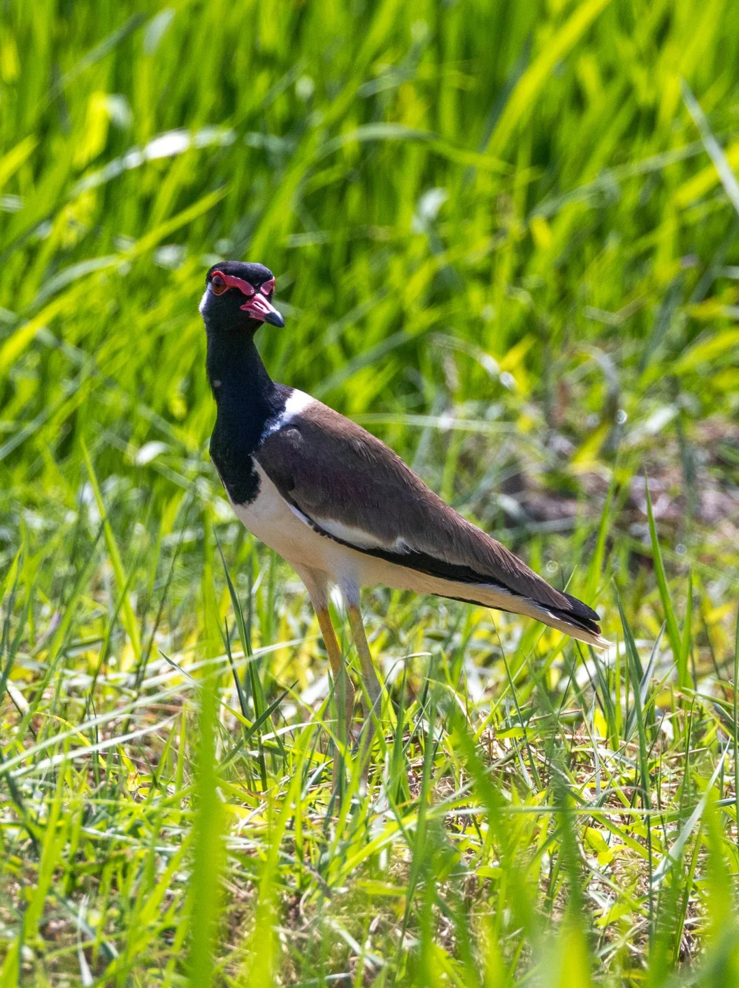 原创拍摄于2025.01 肉垂麦鸡,鸻形目鸻科麦鸡属。只在云南的西部和西南部分布。 肉垂麦鸡的嘴基上有红色的肉垂,使其得名。全身的黑白褐色纹路也是非常漂亮的。 去年在云南的那邦县看到一只,不过那只已经是在边境铁丝墙以外,算是缅甸的区域了。今年年初在一片稻田里也看到一只,还拍到飞版,开心了。