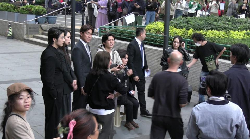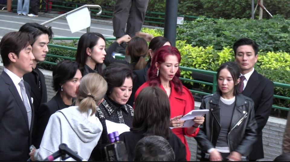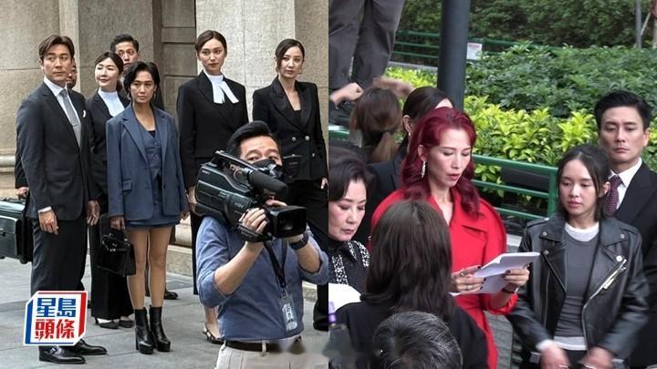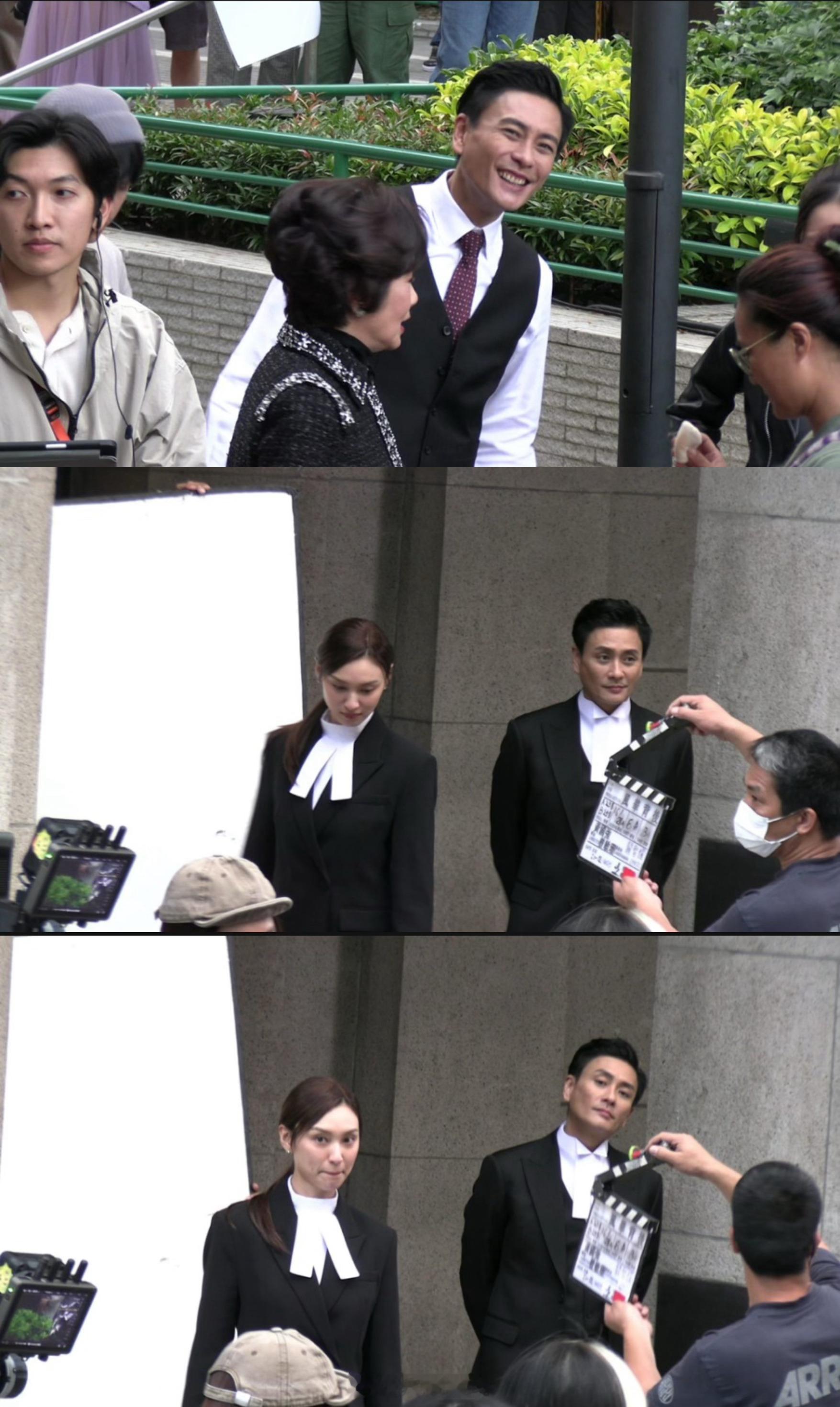 風華背後|蔡少芬中環拍外景緊張背對白 王丹妮律師造型初曝光與前夫黃宗澤對簿公堂由汪明荃、蔡少芬、朱茵及黃宗澤等主演的邵氏劇集《風華背後》正拍攝得如火如荼,昨日(20日)劇中主要演員齊集中環為該劇開工,拍攝一場蔡少芬與朱茵姊妹爭產戲。中環拍外景大批途人圍觀昨日下午,汪明荃、蔡少芬、朱茵、黃宗澤、譚俊彥、鄭希怡、林愷鈴、蘇麗珊及涂毓麟等在中環終審法院大樓外拍攝《風華背後》,吸引大量途人圍觀,而為免影響拍攝進度,工作人員亦在現場控制人群。雖然現身的全是劇中的主要演員,說到最驚喜,相信是被黃宗澤親自欽點做其「律師前妻」的王丹妮莫屬,除了因為她甚少拍劇之外,自揭盅她飾演黃宗澤前妻後,這次是她首度公開以律師造型現身。當天拍攝之劇情講述王丹妮代表朱茵律師團隊,與黃宗澤代表的蔡少芬團隊打官司爭產,而律師Look上陣的王丹妮亦如黃宗澤所言,夠晒霸氣,甚有台型,就連圍觀的途人也大讚有型。在她與黃宗澤拍攝一場進入大樓的戲份,未埋位前他們與工作人員有講有笑,一開拍就即時變得貌合神離,非常好戲。拍完與王丹妮的戲份後,黃宗澤即準備跟汪明荃(阿姐)、譚俊彥及蘇麗珊等拍攝家族見記者的場面,這次是汪阿姐相隔11年再拍劇,劇組亦十分體貼地安排凳讓她坐着等候,期間黃宗澤一見汪阿姐就不時做出鬼馬表情𠱁阿姐開心,他又跟譚俊彥和蘇麗珊等人亦不時講笑,氣氛輕鬆。至於身為爭產主角,即汪阿姐兩個女兒的蔡少芬、朱茵隨後亦出現,染了一頭紅髪,身穿鮮紅色長外套的蔡少芬在眾人中非常突出,不過她就似乎頗為緊張,未拍攝前不停拿着劇本狂背。一班好戲之人讓拍攝非常順利。完成工作後,一眾工作人員亦趁機跟他們一起影合照。