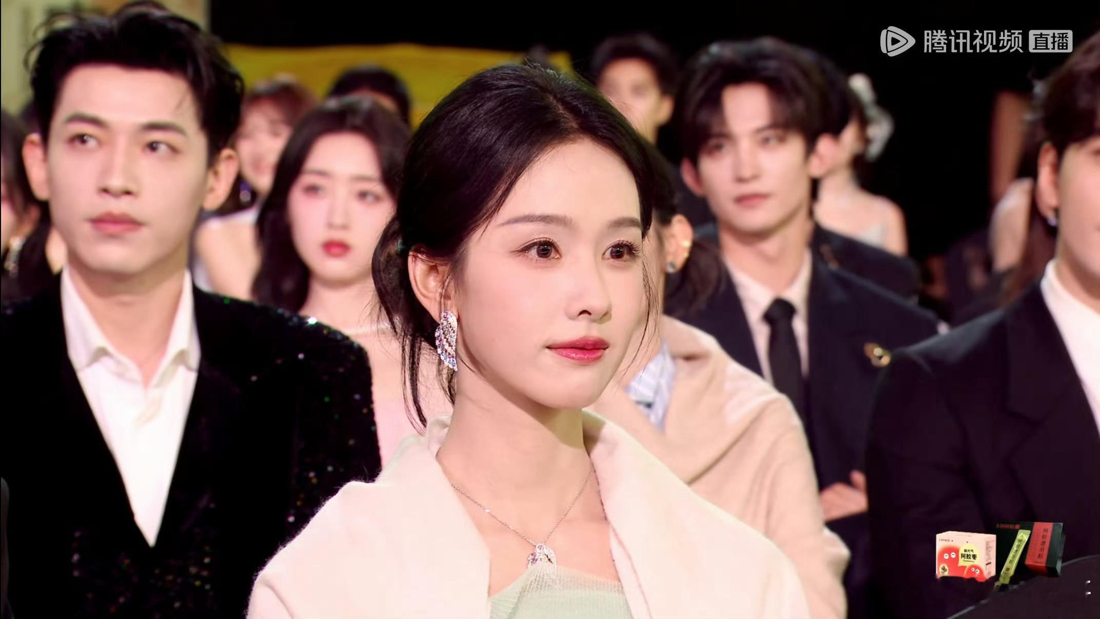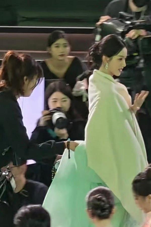 陈都灵今晚星光大赏内场造型很温柔知性诶,有点国泰民安忍不住想唱难忘今宵的大气美!