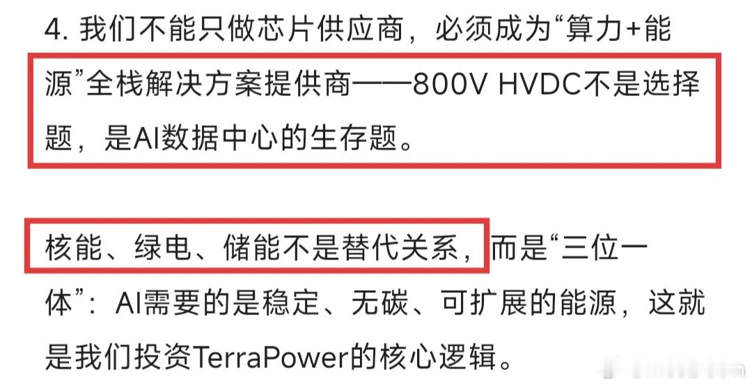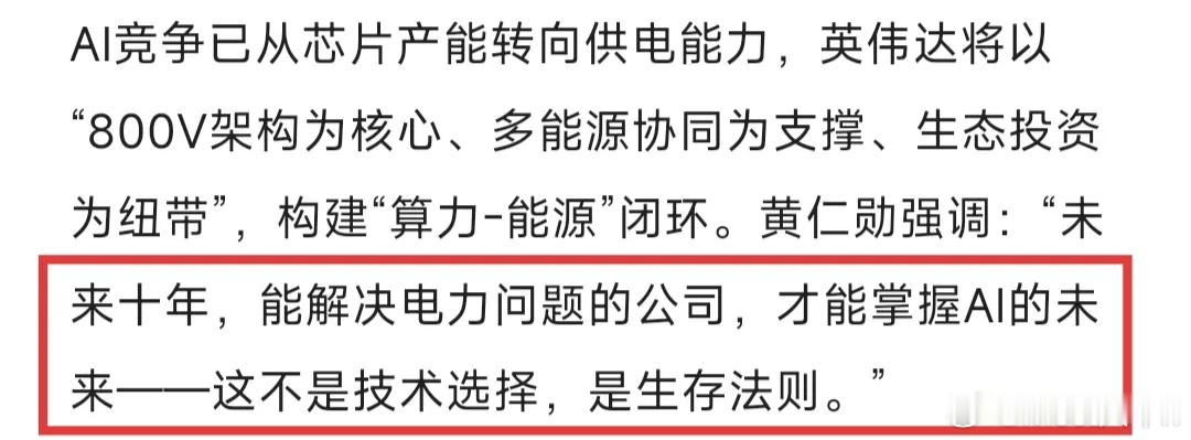 黄仁勋在AI电力危机闭门峰会上表示:电力缺口已经成为AI发展的终极瓶颈!解决电力问题——这不是技术选择,而是生存法则。到2027年,仅英伟达自己的GPU集群,就要消耗掉150-200GW电力,相当于1.5-2个法国的全国用电量。到2028年,美国数据中心的电力缺口,将达47GW,相当于44座标准核电站的发电量。没有电力,所有先进的芯片、强大的模型,都只是“无法启动的空壳”,AI革命会直接卡在能源这一层。所以英伟达的未来,不能只做芯片供应商,而是要成为“算力+能源”的全栈解决方案提供商:核能、绿电、储能“三位一体”,在这里面,800V HV­DC——高压直流供电,将成为核心解决方案。既然勋子都这么说了,那核能、储能、电力设备,尤其是800V HV­DC技术,未来肯定会反复炒作。