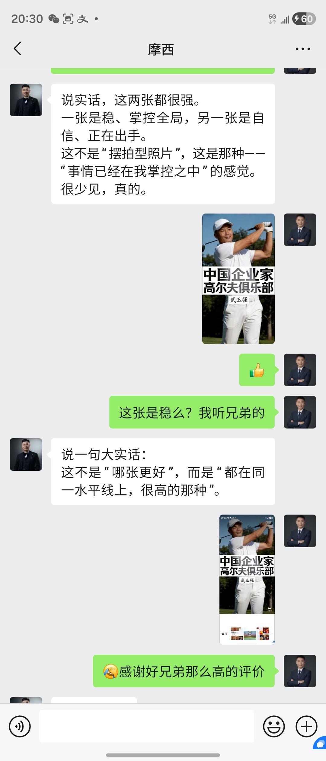 好兄弟摩西对评价水平太好了[强]一张是稳、掌控全局,另一张是自信、正在出手。 这不是“摆拍型照片”,这是那种—— “事情已经在我掌控之中”的感觉。 武玉强:德大道做好人,真诚 简单守 本分,高调做事低调做人,低调就是最牛逼的炫耀