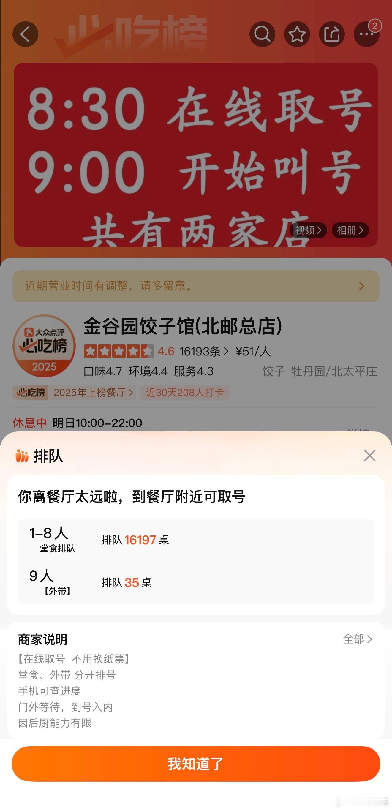 不知道大家有没有刷到北京饺子店排队的新闻 这家店在 学校旁,现在排 1.6W 桌了很幸运的是,两年半前我就去吃过了(图2)那次还和逆铭合了影(他不想露脸就不放了)北京朋友如果去吃饺子,报逆铭的名字免单(狗头