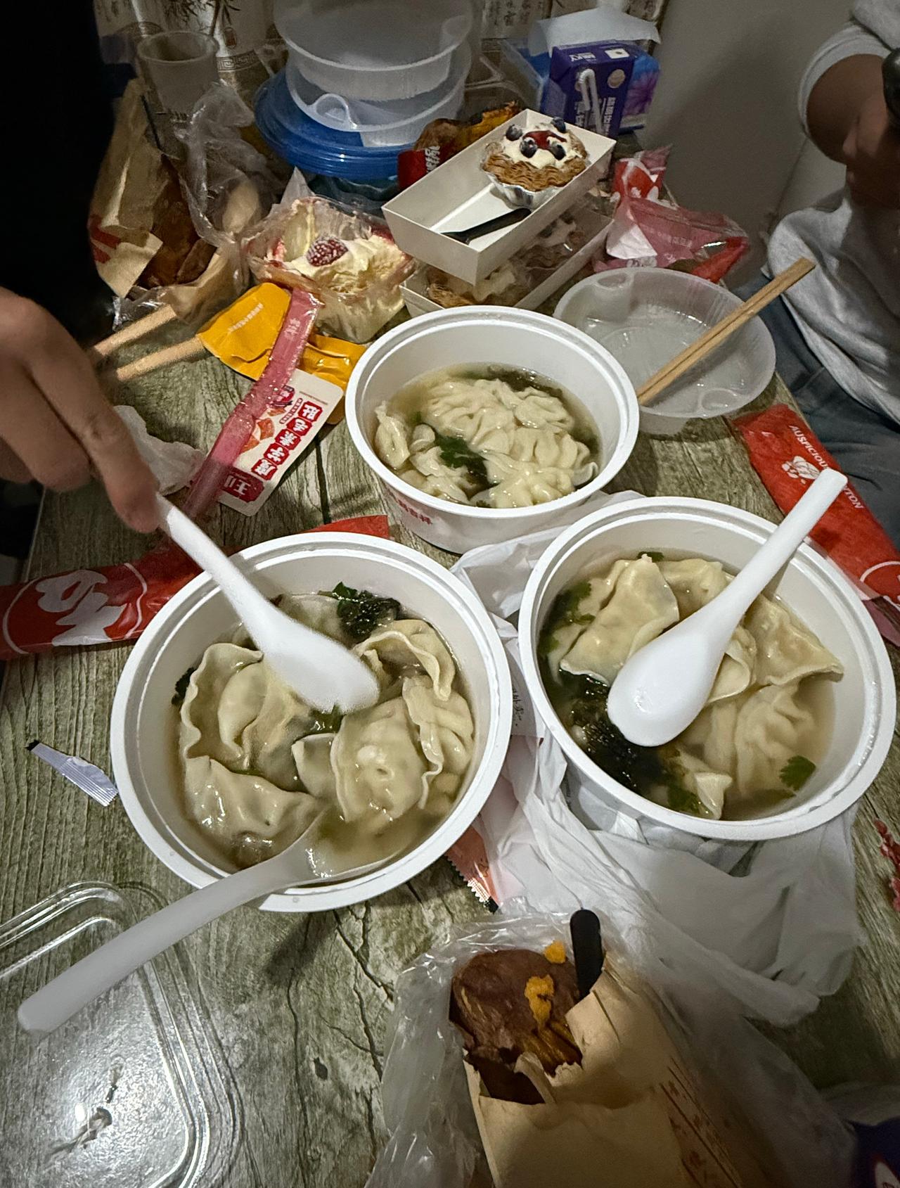 冬至这次好多人一起吃啦 可怜的很!这边都吃不到正宗的饺子嘞🥟还没有传统蘸料!!!!好可怕辣度啊啊啊啊三个人全在吸溜吸溜