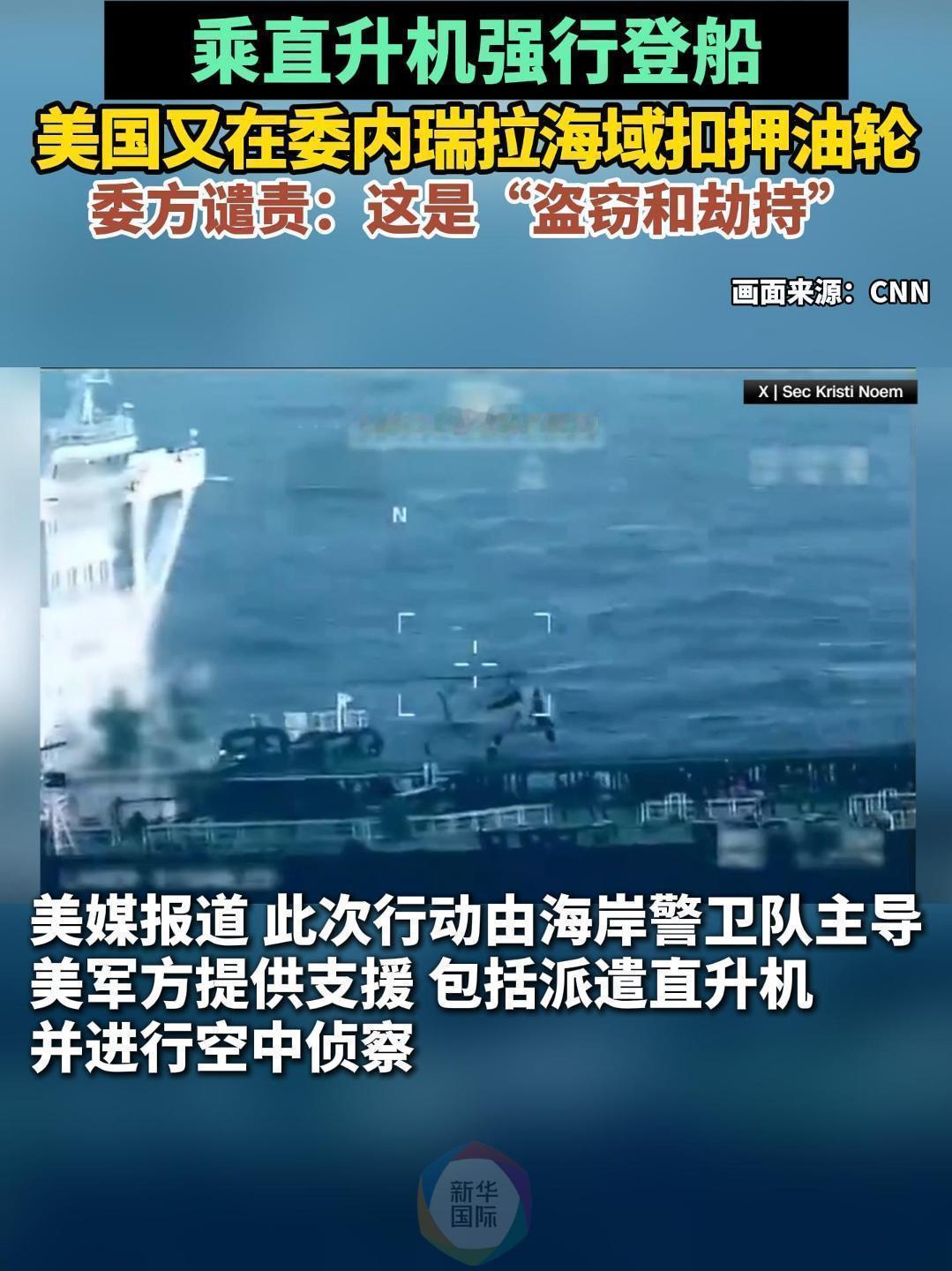 12月22日,据央视新闻直播间报道,当地时间12月20日,美军在委内瑞拉附近海域通过直升飞机降落在油轮上,强行扣押一艘悬挂巴拿马国旗油轮,这是美国本月第二次公然在委内瑞拉海域扣押30万吨油轮。 据美国政府官员报道,12月20日,被美国扣押油轮悬挂巴拿马国旗,装载委内瑞拉石油,最终目的地亚洲,当时军事行动发生在国际水域。由美国海岸警卫队实施,通过直升飞机将军队降落在油轮上,并控制该油轮。 同时,古巴外交部最强烈谴责美国扣押委内瑞拉油轮属于海盗行为。 评论,美国抢劫委内瑞拉油轮馋了!上瘾了!空手套白狼。 美国的所作所为纯粹是强盗行为,无法无天了!联合国秘书长安理会也无能为力了![呲牙][呲牙][呲牙][呲牙][呲牙][呲牙][呲牙]