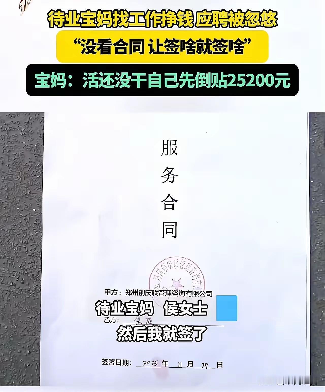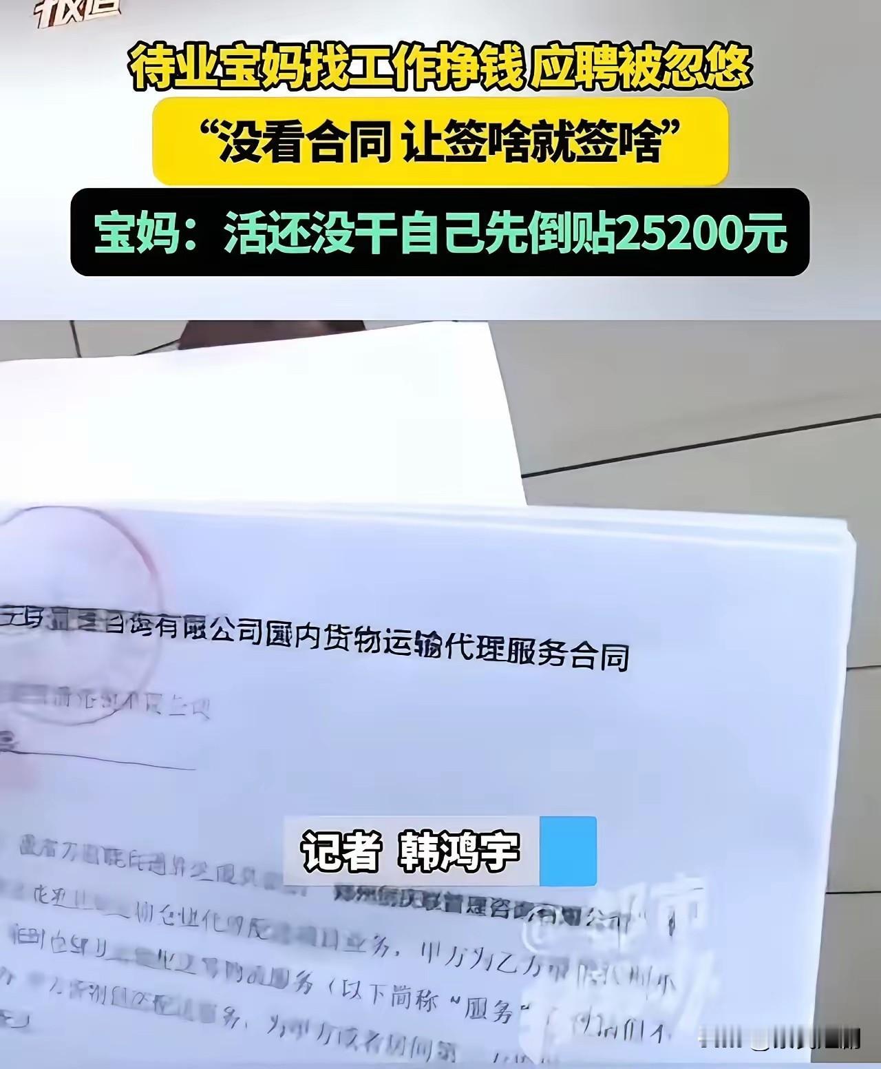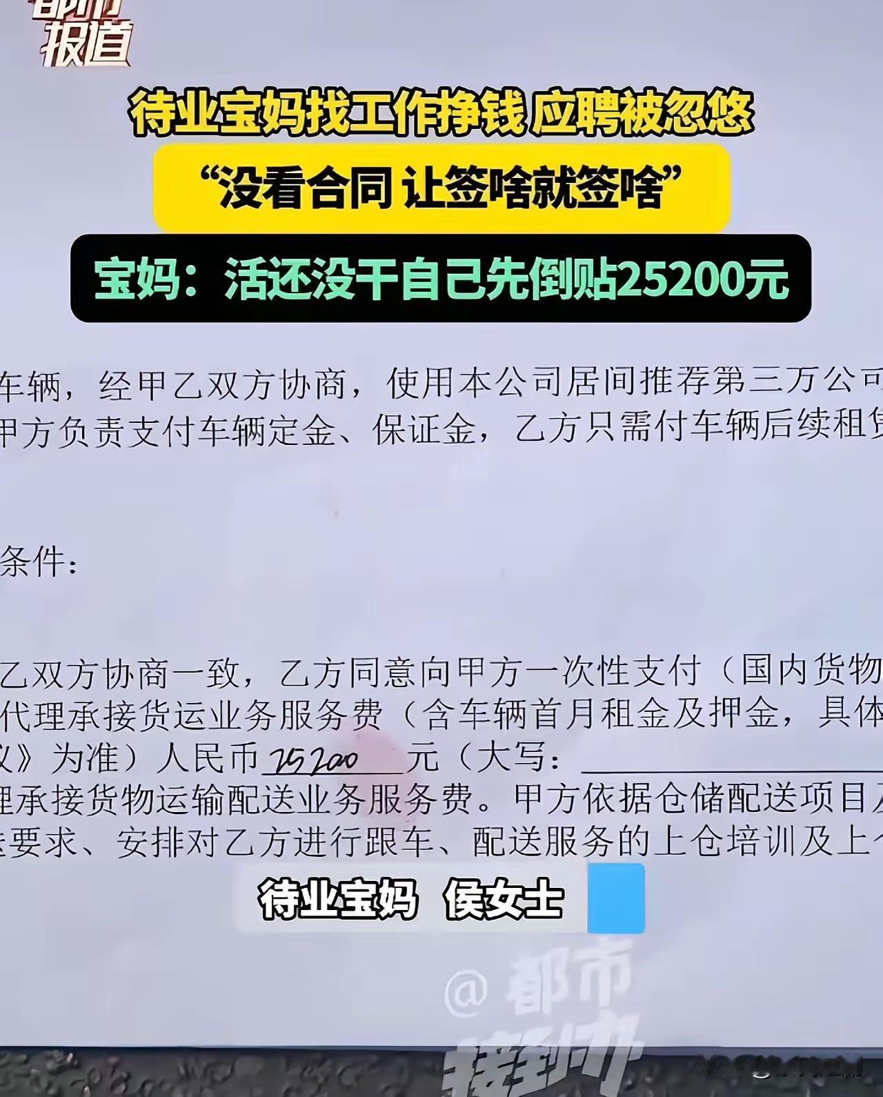 河南郑州,一位女子为补贴家用,决定应聘司机工作,不料却落入一个惊人陷阱。她本以为这只是份普通兼职,能赚些零花钱,可在签合同与实际工作时,却遭受了巨大经济损失。 据女子讲述,她未仔细研读合同,便被对方诱导租用车辆,成了所谓的“司机”。工作开始后,她才慢慢发觉,那“高薪”承诺并未兑现,反倒让自己陷入更深的经济困境。更让人气愤的是,合同里要求她支付25200元的“押金”或“租金”,这笔钱既无保障,也未得到合理解释。 女子愤懑地称:“我没看清合同内容,就被他们骗了。不仅没赚到钱,还倒贴这么多。”她指责对方虚假宣传,夸大工资和工作条件,实则让她承担了巨大经济风险。 此事件反映出部分用人单位利用信息不对称与合同陷阱欺骗求职者的现象。不少求职者未充分了解合同条款,就轻信对方承诺,最终不仅没达成预期收入,还背负沉重经济负担。这也提醒广大求职者,签任何合同前,务必仔细研读条款,特别是涉及押金、租金、赔偿等关键内容,以防被“套路”。 同时,相关部门应加强对招聘市场的监管,打击虚假宣传和合同陷阱,维护劳动者合法权益。社会公众要提高警惕,理性看待各类“高薪”招聘信息,不轻信、不盲从,才能有效避开类似陷阱。 这起事件令人痛心,也敲响警钟:求职时,诚信和法律意识缺一不可。唯有提高警觉、强化法律意识,才能避免成为“受害者”,维护自身合法权益。
