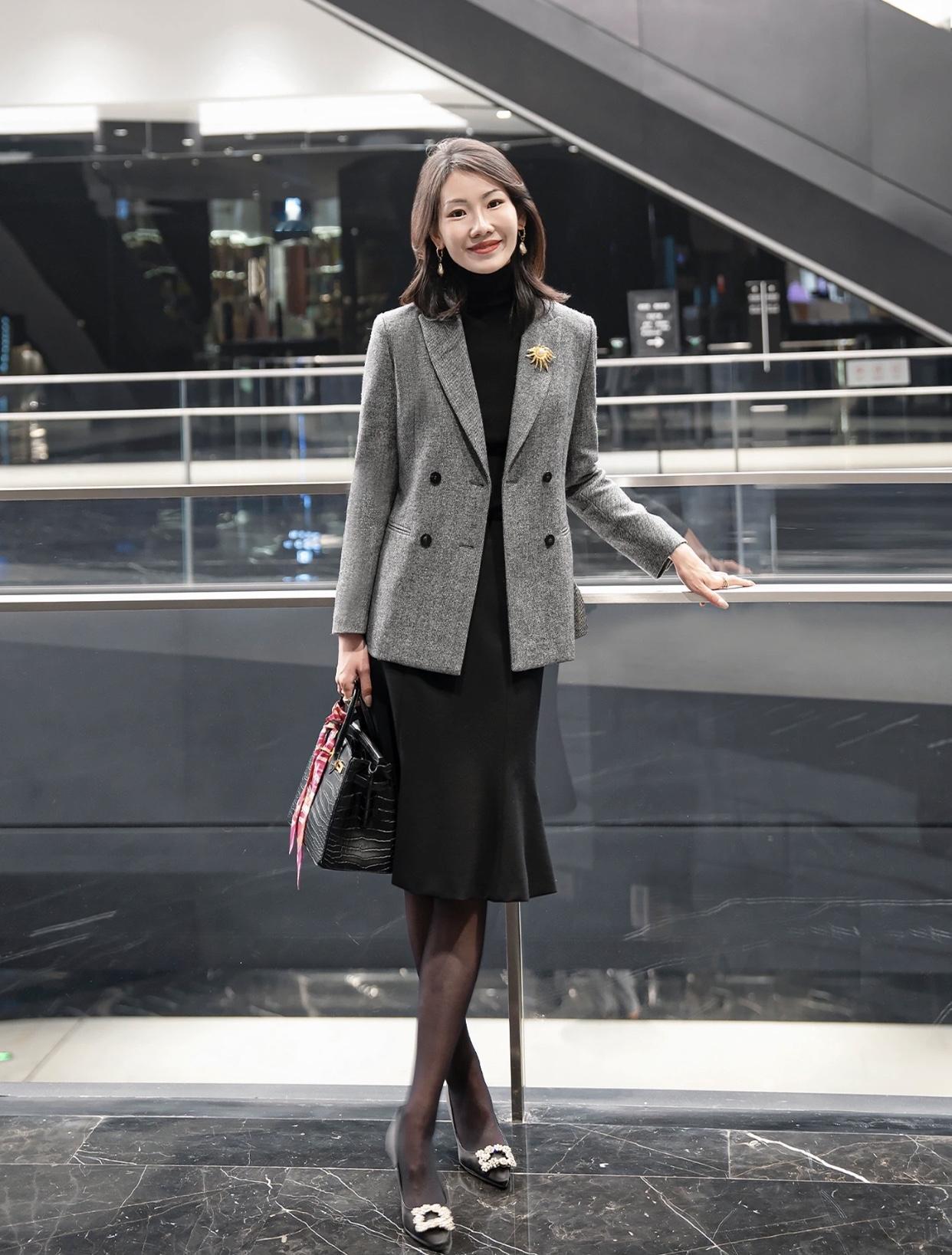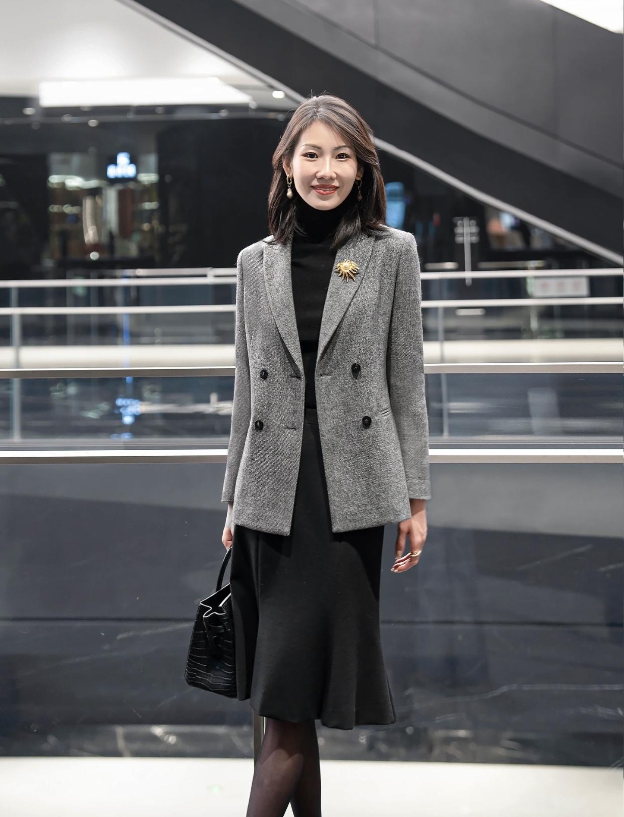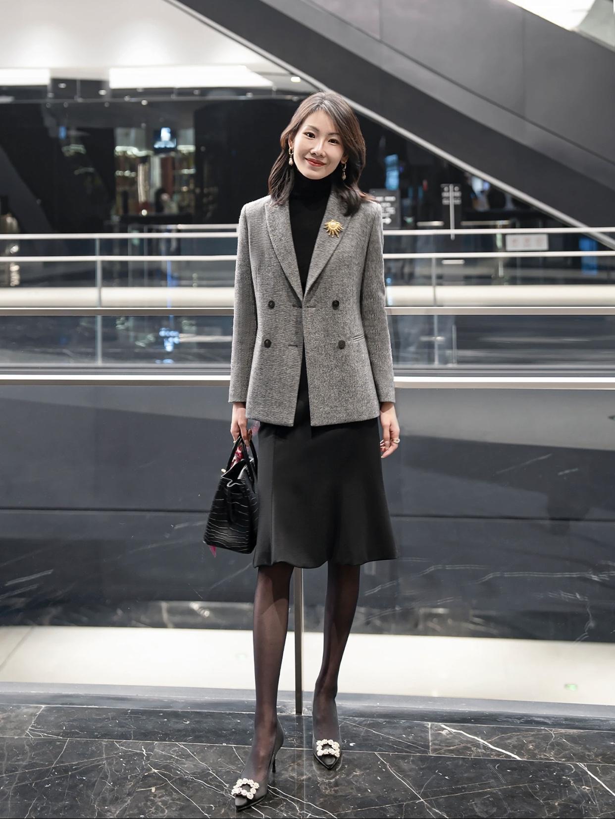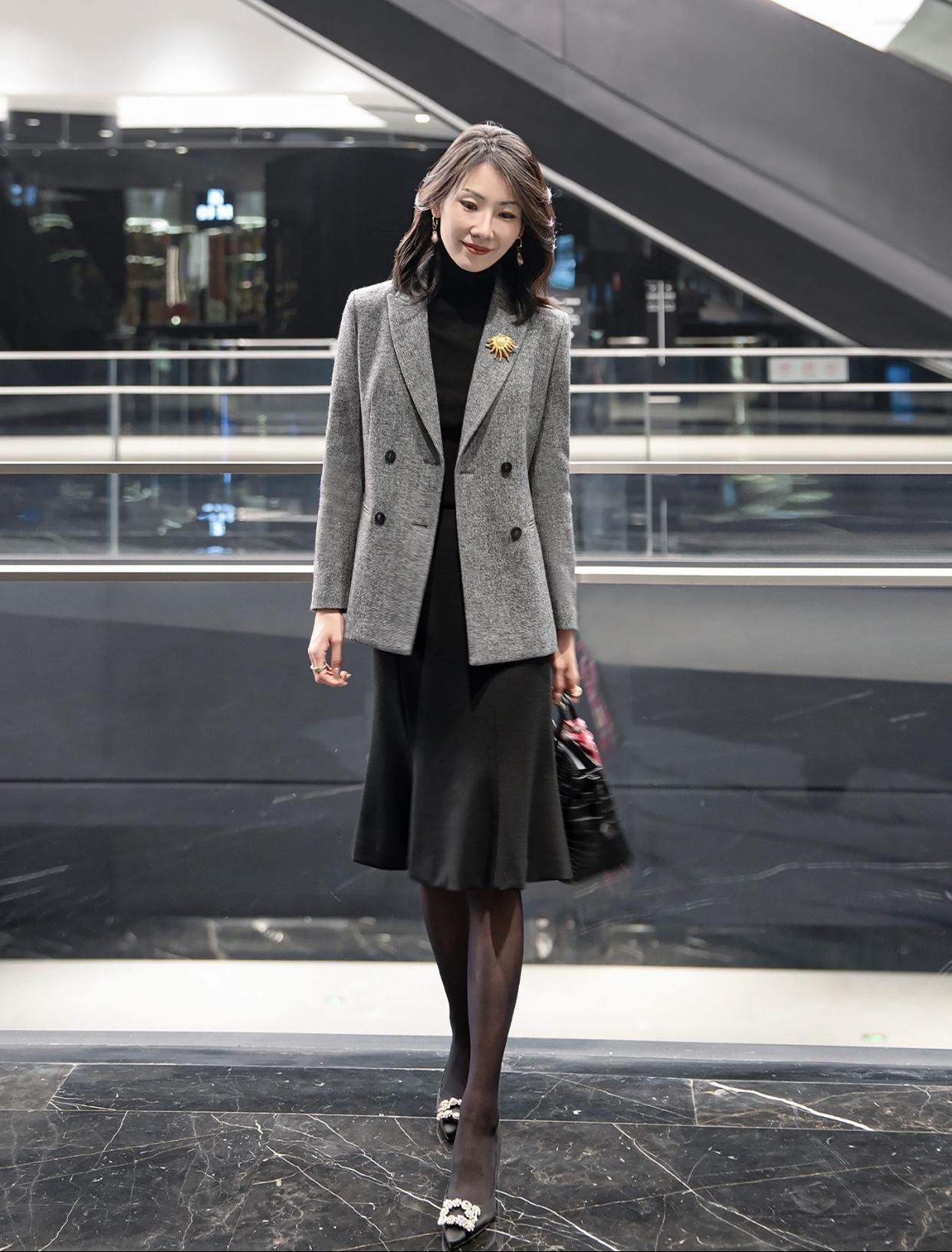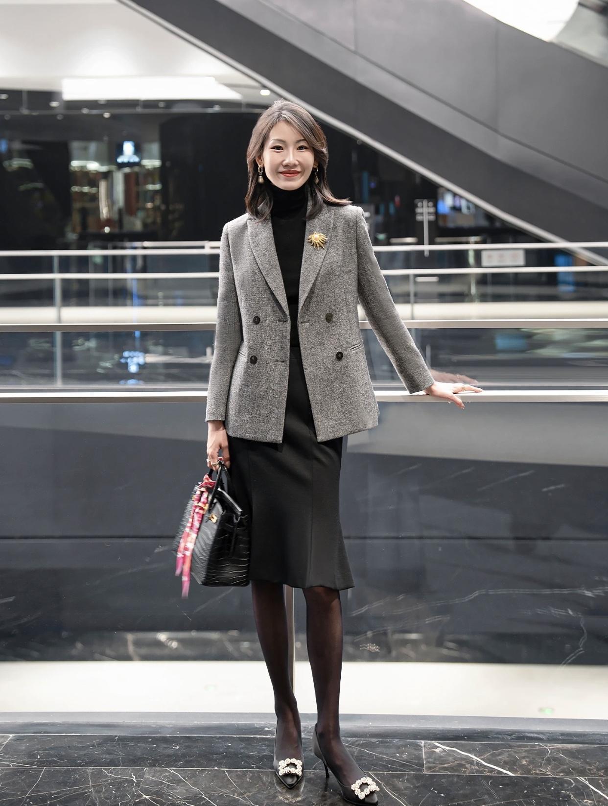 优雅气质穿搭,灰色西装外套搭配黑色裙装,尽显职场风范!