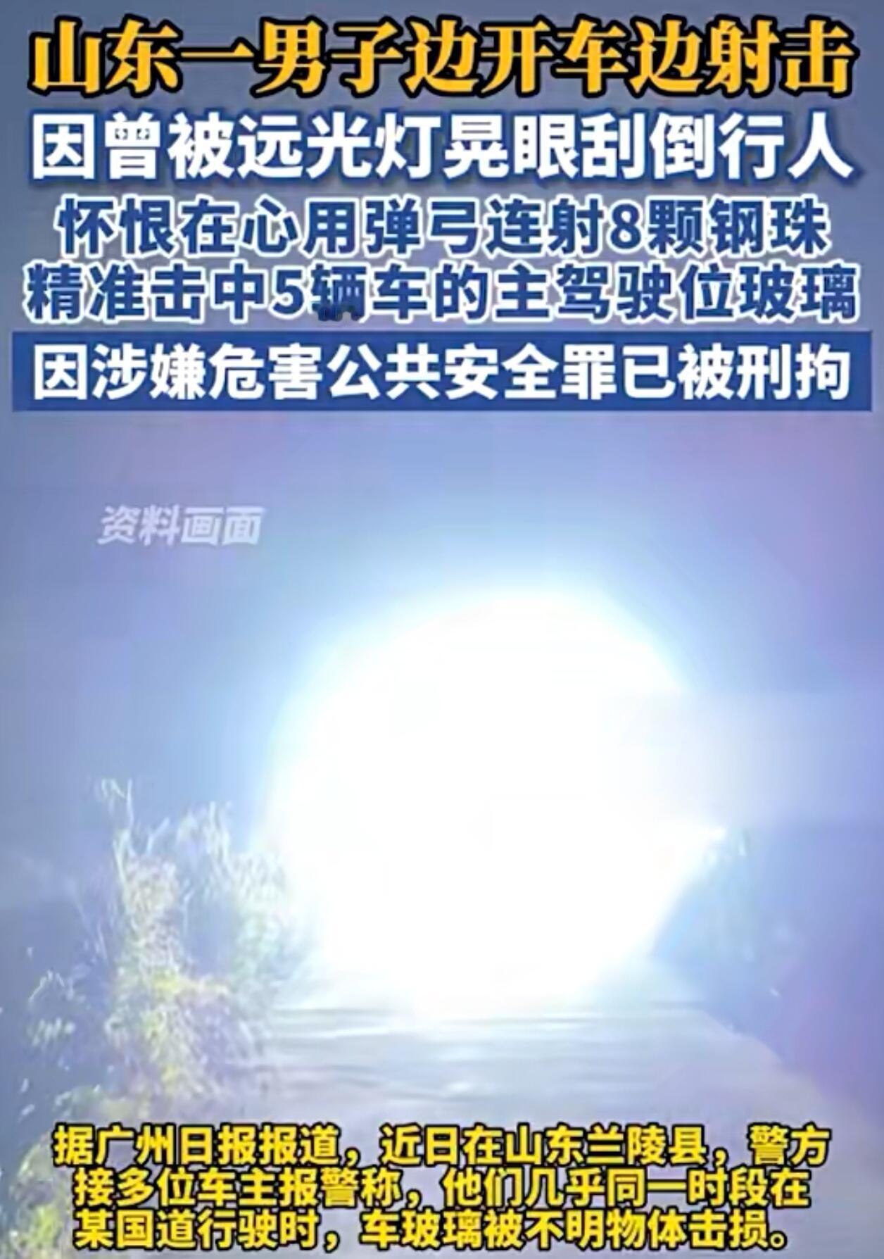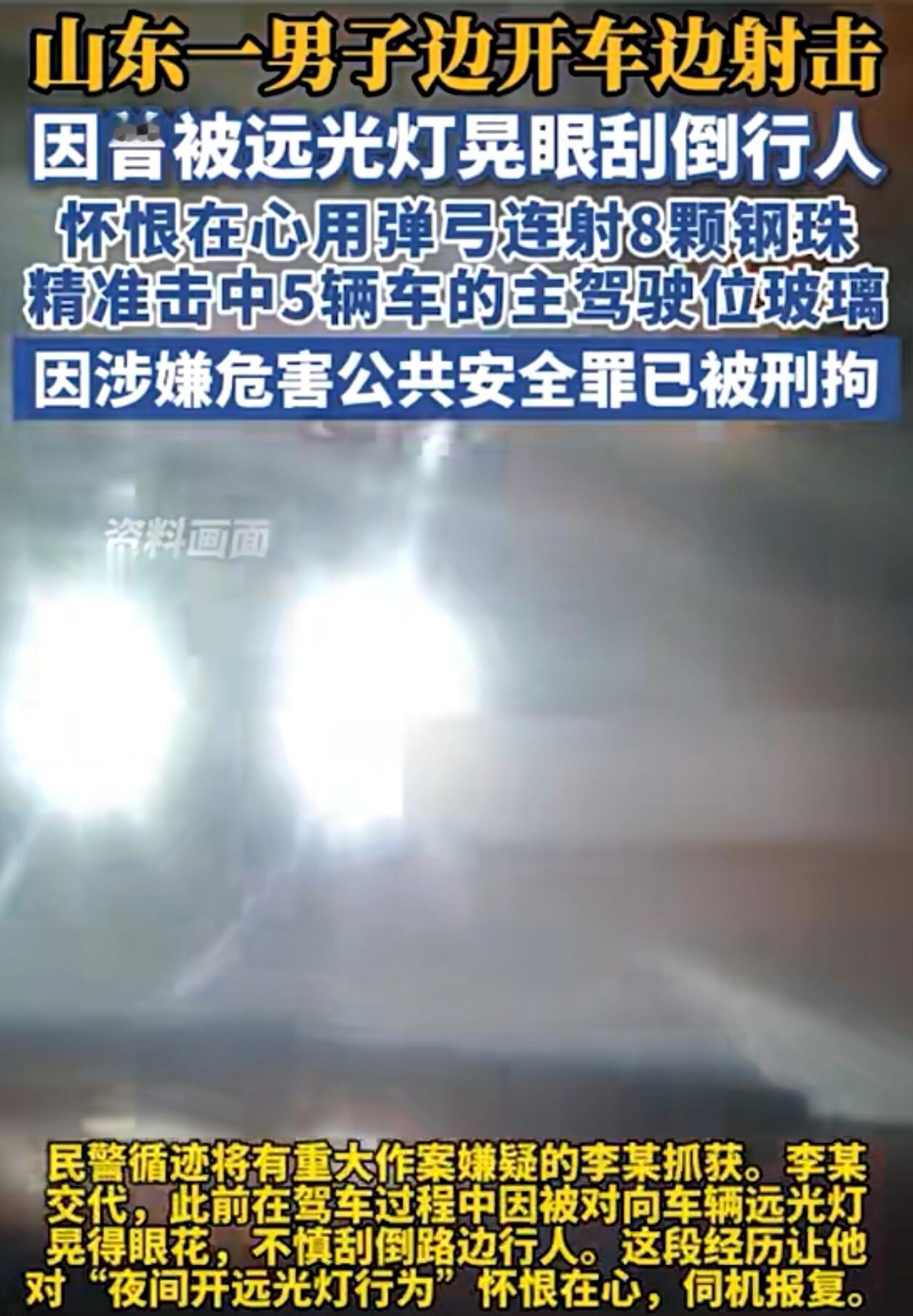 这事儿真是离谱到家了。一个男的开车时候用弹弓打别人车玻璃,还是瞄准主驾驶位置打的,想想都吓人。一查原因,更让人无语——他自己以前吃过别人乱开远光灯的亏,那次事故让他记恨到现在,最后居然用这么极端的方式报复社会。 滥用远光灯确实可恨,晚上冷不丁被对面大灯一照,眼前白花花一片,真可能出大事。这男的吃过这苦头,心里有气,很多人其实能理解这种烦躁。但理解归理解,谁也不是傻子。你自己被远光灯坑过,转头就拿弹弓射无辜路人的车窗?这哪是解决问题,纯属泄愤害人。 路上那些被他打中的司机招谁惹谁了?玻璃突然就碎了,万一有碎片崩到眼睛,或者司机一慌出了车祸,这责任算谁的?他那八颗钢珠打出去,根本就是在拿别人的命给自己出气。这种人被抓进去,真是一点不冤。 说到底,远光灯乱用是个老问题,该管,得好好整治。但绝不能成为任何人犯罪的理由。你痛恨一种恶行,结果自己去干了另一种更危险的恶行,这不就成了自己最讨厌的那种人了吗? 所以说,生气归生气,脑子得清醒。遇到不文明驾驶,举报、投诉都行,再不行自己开车多小心。但这种以暴制暴、伤及无辜的路子,走上去就是犯法,没任何借口。希望这事也能给那些容易路怒的人提个醒:方向盘在手,情绪得在脑。别让一时冲动,毁了自己也害了别人。