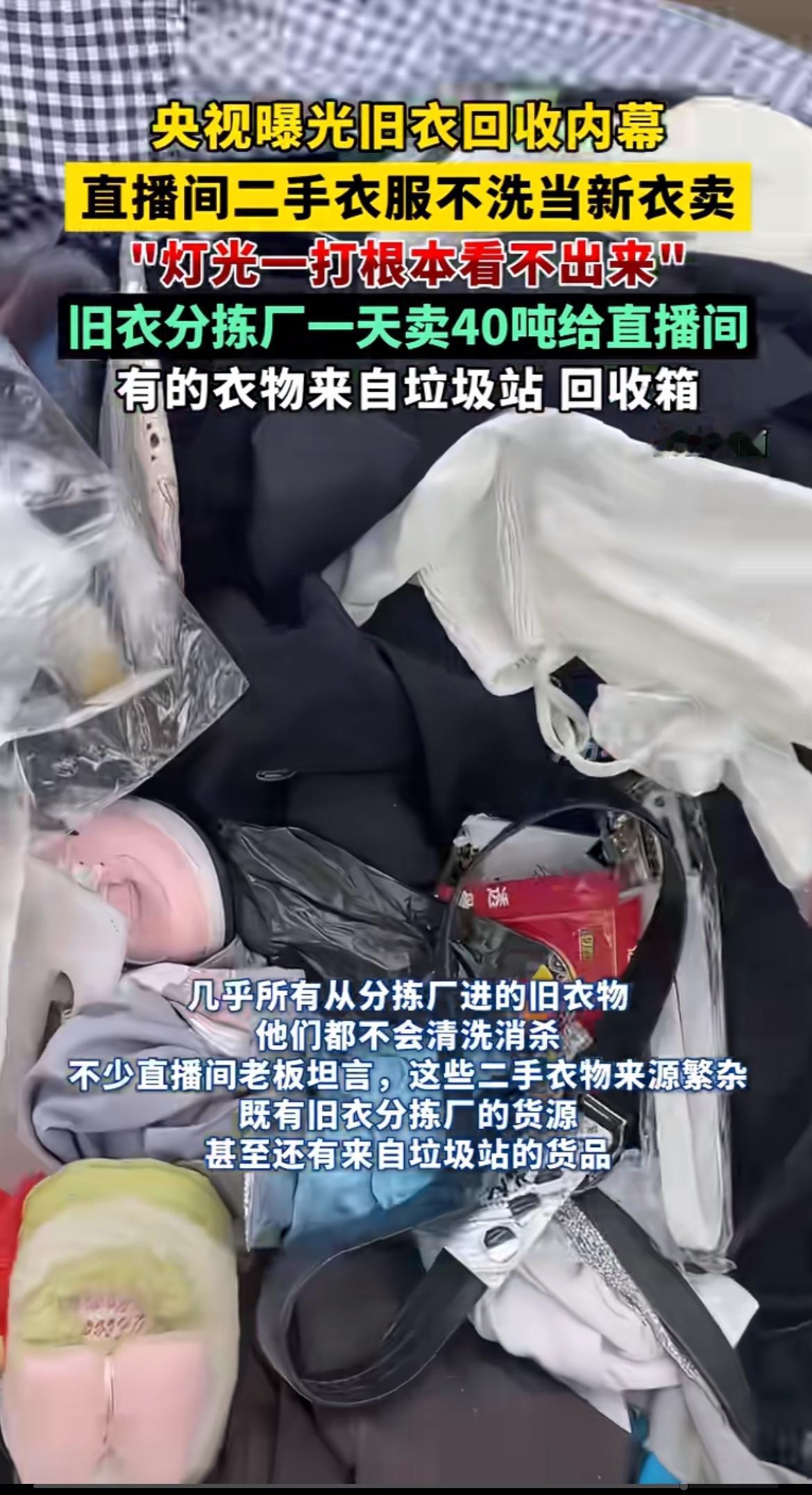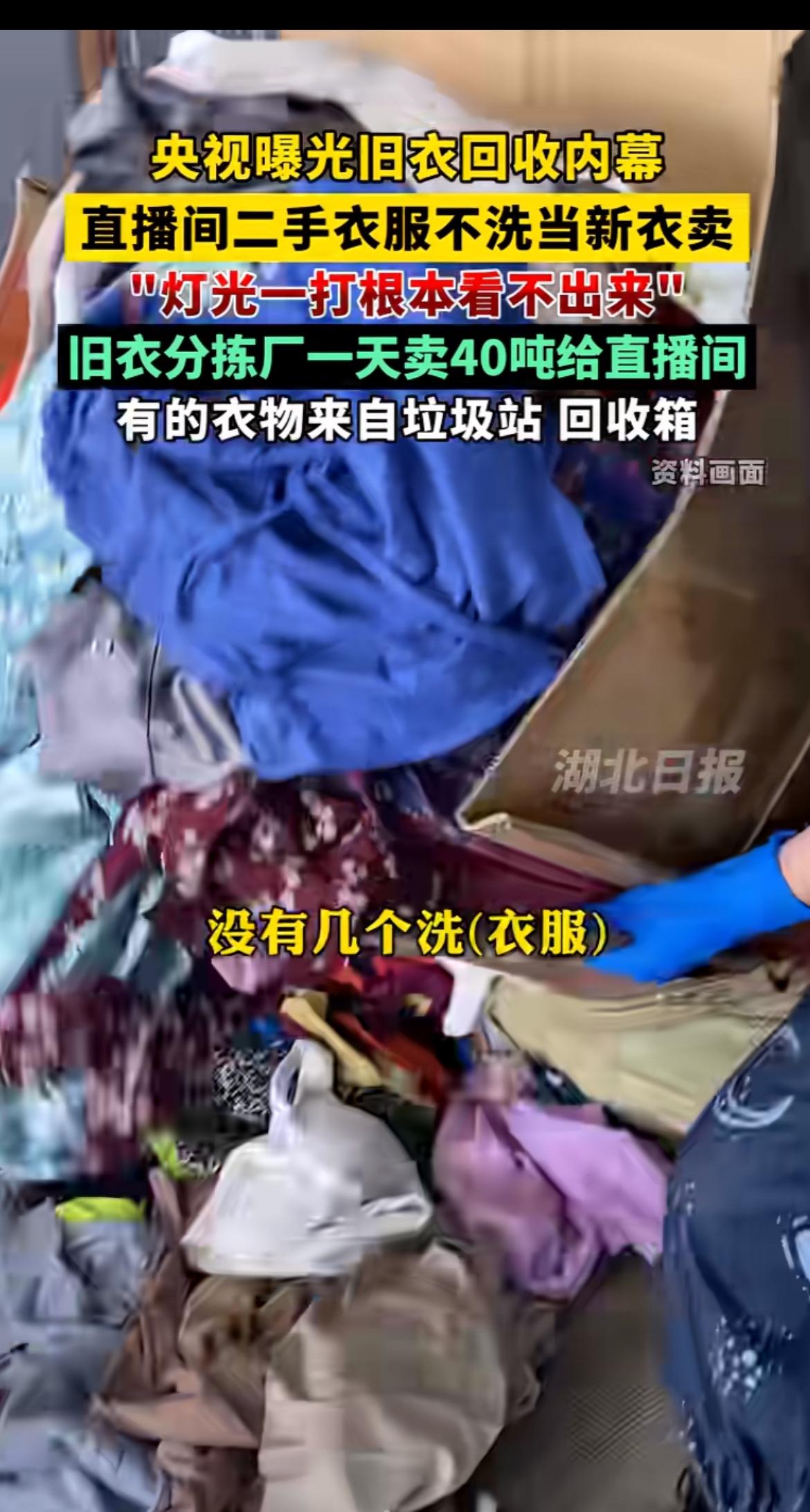 央视这波曝光太炸裂了!12月21日,旧衣回收产业链黑幕被狠狠撕开。小区里那些打着“爱心捐赠”“公益回收”的箱子,根本没把衣服捐给需要的人。记者实验发现,“捐赠品”被运到废旧仓库,里面衣服污渍明显、味道难闻。 在长春这个旧衣回收集散地,回收厂生意火爆,货都供给电商直播间,一家公司一天能卖几十吨。直播间打着“尾货”“样衣”旗号,二手童衣不洗就当新衣卖。主播用话术和滤镜,让破衣服成爆款。咱以为捡了便宜,其实是买了风险,以后买衣服可得擦亮眼睛!
