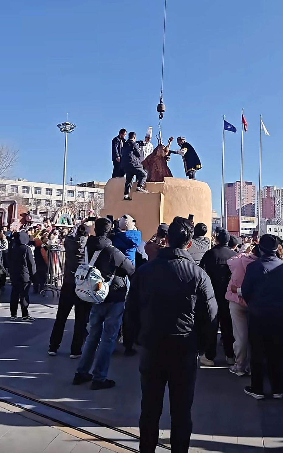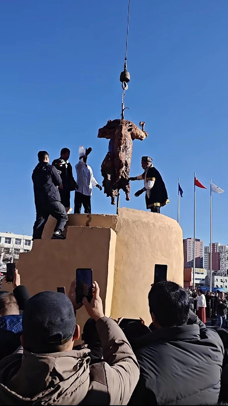 12月21日冬至,我去了银川金凤新华联体验烤骆驼。这场景太震撼了,一只整骆驼架在烤架上,色泽金黄,油脂滋滋作响,香气扑鼻。我尝了一口,那味道绝了,肉质鲜嫩多汁,没有一点膻味。听老板说,这烤骆驼是他们的特色,制作工艺很讲究,要经过多道工序腌制和烤制。店里人超多,大家都围在骆驼旁拍照、品尝。冬至吃烤骆驼,这独特体验让我难忘,也给这个冬天添了把火。 烤骆驼排骨