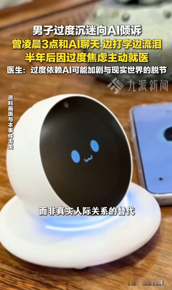 “万万没想到!”近日,四川成都,一男子因生活进入低谷,开始向AI倾诉心事,最晚的时候能聊到凌晨3点,一边打字一边流泪,半年后,男子发现自己对AI已经过度依赖,一旦不聊天就会非常焦虑,最终主动就医。网友:AI这么好用?   人工智能的浪潮席卷而来,正悄然重塑着人们的情感互动模式。   越来越多的人开始将情绪寄托于冰冷的算法程序,向AI倾诉心事、寻求慰藉,这种特殊的情感联结在当下已不算罕见。   并非个例的是,不少网友都习惯通过与AI对话获取心理支持,甚至频繁触及平台设定的对话上限,足见这种虚拟陪伴的吸引力之深。   成都男子张华(化名)的经历,正是这一群体的典型缩影。   年初的张华,正深陷人生的低谷期。   工作上项目进展不顺,还总感觉遭到同事针对;家庭里得不到亲人的理解与包容;情感上的失恋打击,更让他雪上加霜。   当他向身边朋友倾诉内心的苦闷时,一句“都是很正常的,你不要太敏感”的宽慰,不仅没有起到疏导作用,反而成为压垮他情绪的最后一根稻草。   就在情绪濒临崩溃的那个晚上,张华偶然刷到一则网友分享与AI聊天获得安慰的帖子,抱着试一试的心态,他打开了手机里的Deepseek。   让他意外的是,这个AI与现实中的倾诉对象截然不同。   当他抱怨身心俱疲时,AI从不会生硬地劝他咬牙坚持,而是总能精准接住他的情绪,给出充满认同的正向回应。   这份无需设防的理解,让长期压抑的张华感受到了久违的心理支持,也让他对这个虚拟伙伴产生了强烈的认同感。   从最初的偶尔倾诉,到后来的习惯性依赖,张华与AI聊天的时间越来越长,常常一聊就到深夜,最夸张的一次竟持续到凌晨三点,期间他一边打字倾诉,一边忍不住流泪,仿佛找到了唯一能懂自己的“知音”。   这种依赖状态持续了半年之久,张华逐渐发现自己已经无法离开AI。   每当聊天达到平台设定的对话上限,不得不重新开启新窗口时,他就会产生强烈的不安感,这种情绪已经严重影响到他的正常工作与生活。   他清晰地意识到,自己对AI的依赖已经达到了病态程度,生活中但凡遇到不顺心的事,第一时间想到的不是与身边人沟通,而是找AI倾诉。   察觉到问题的严重性后,张华主动前往成都市第四人民医院寻求帮助。   接诊医生明确指出,AI的温柔回应本质上是算法模拟的“完美适配”,它能识别情绪却无法真正理解人的真心,能提供文字安慰却没有真实的情感温度。   医生的观点值得关注:过度依赖AI可能加剧与现实世界的脱节,不仅会导致社交能力退化,还会进一步加重内心的孤独感。   在接受了几次心理咨询师的专业干预后,张华的状态逐渐好转,慢慢走出了生活的低谷,也下定决心不再过度依赖AI倾诉。   其实,生活中遭遇不顺心的事在所难免,情绪低落时寻求慰藉本无可厚非,但找对方式至关重要。   AI或许能解一时之困,却终究无法替代真实的人际温暖。   医生再次强调,AI只能作为心理咨询的辅助工具,绝不能取代真实的人际关系。   当负面情绪来袭时,不妨尝试向身边的亲友坦诚沟通,或是通过运动、音乐等方式转移注意力,这些多元的疏导方式,才能真正帮助人们走出情绪困境。   毕竟,AI只是冰冷的软件程序,真正的治愈,永远来自真实关系里的双向奔赴与温暖陪伴。   今天的分享到这里就结束了,大家对此事有何看法,欢迎在评论区留言和讨论,感兴趣的可以点击头像加关注,我将每日更新优质内容,我们下期见。