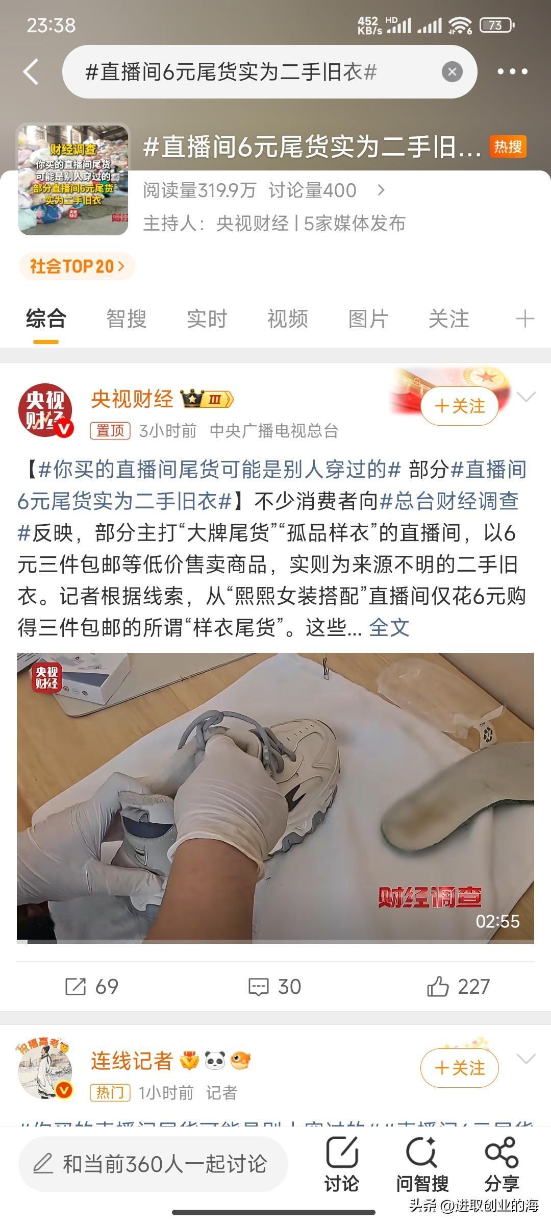 最近总在提刺激消费,就这种购物环境,都不敢去消费了? 近日央视报道,直播间卖的所谓的孤品,尾货,竟然都是回收的旧衣服,还有的翻新的。你能想到会是这样吗?直播间乱象又何止这些呢? 买的羽绒服不含羽绒, 买的的维生素竟然不含维生素。 装个宽带网速从没有达过标。 买个东西都胆颤心惊,我们哪还有胆量去消费。 现在才知道胖东来,山姆超市为何那么火, 只因为他们卖的都是真货。 我们只是消费者,不是专家,就不能放放心心的买个东西吗?