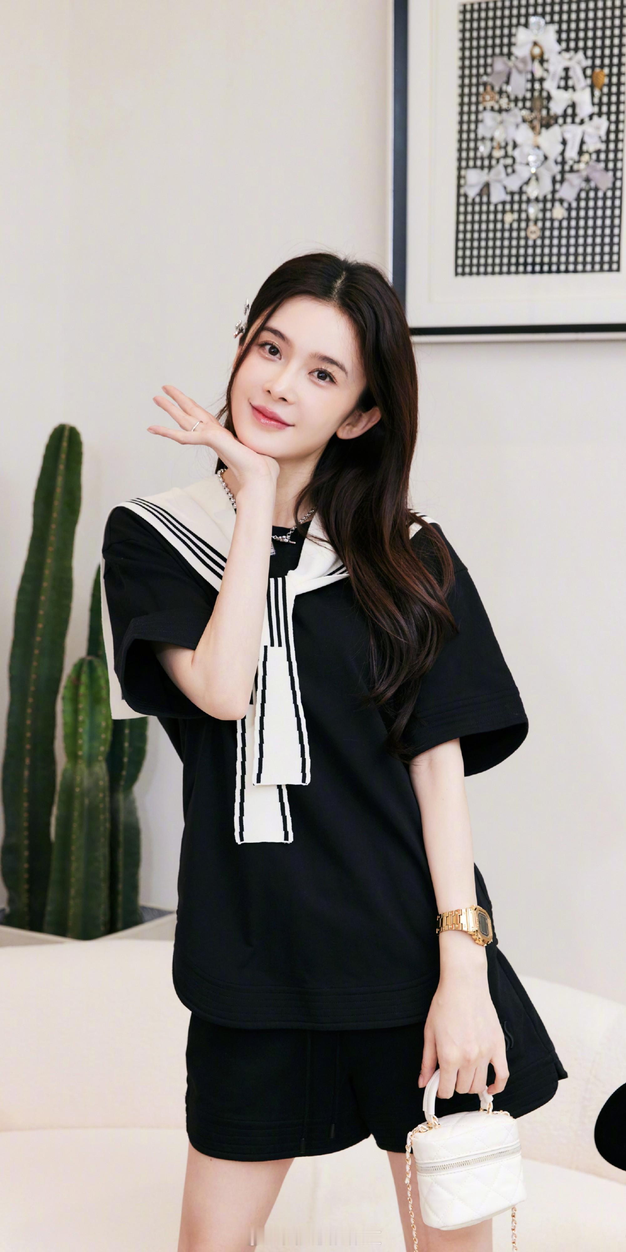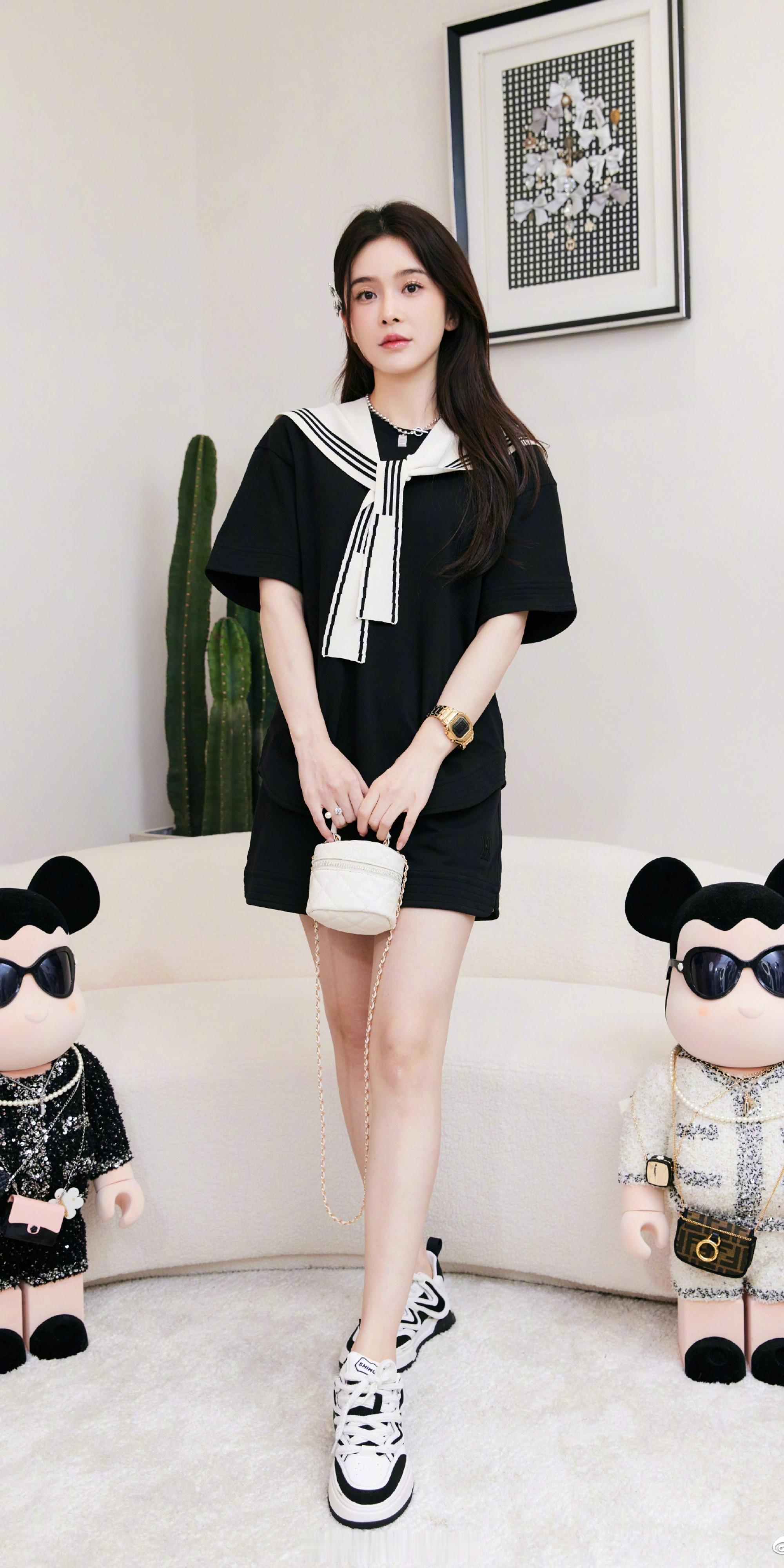但凡张天爱身上有一点赘肉都穿不了这个衣服