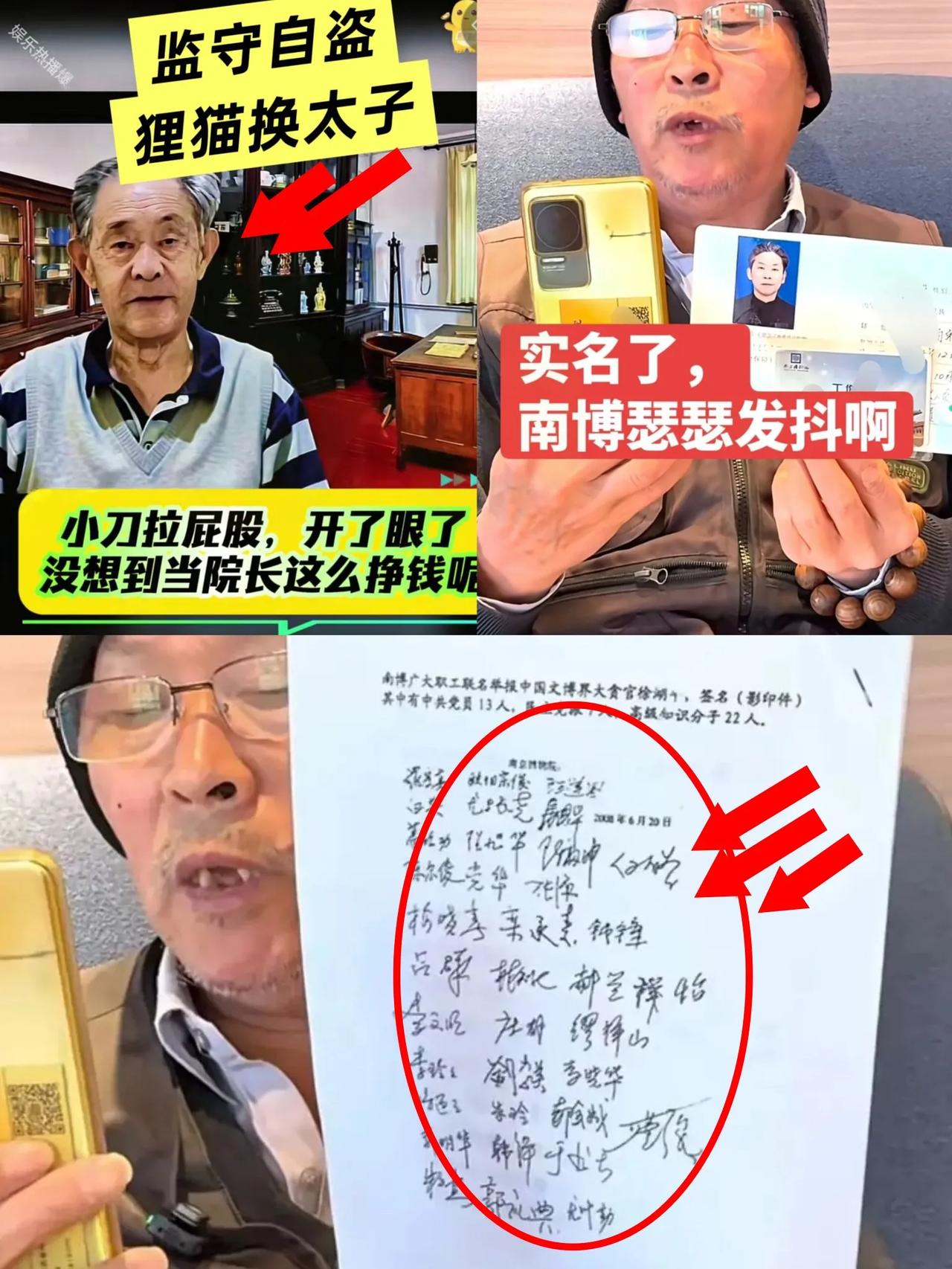 南博老员工郭礼典实名举报前院长徐湖平种种恶行! 还拿着30多人联名签字发视频控诉,这事儿可不小! 徐湖平在任时,竟自编自导鉴定文物为赝品的闹剧,利用特殊身份把一堆文物倒腾到儿子名下海外公司拿去拍卖,赚黑心钱。他还送礼给领导,稳固自己的仕途! 其实南博老员工早前就揭露过他,可一直没热度,无人搭理! 古董界本应干干净净,怎能容这些蛀虫胡来! 希望这一次能借着南博《江南春》拍卖一事能把所有的事都查个水落石出, 还古董界一个清白! 大家觉得这次能还古董界清白不?