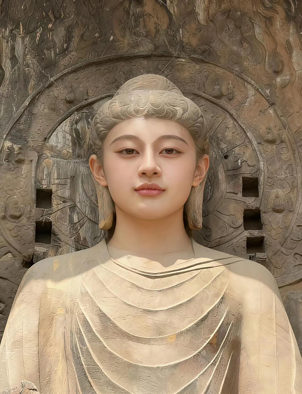 龙门石窟的大佛是当时按照武则天的样子雕刻的,图一据说是武则天真容,图三为AI修复的样子[呲牙]
