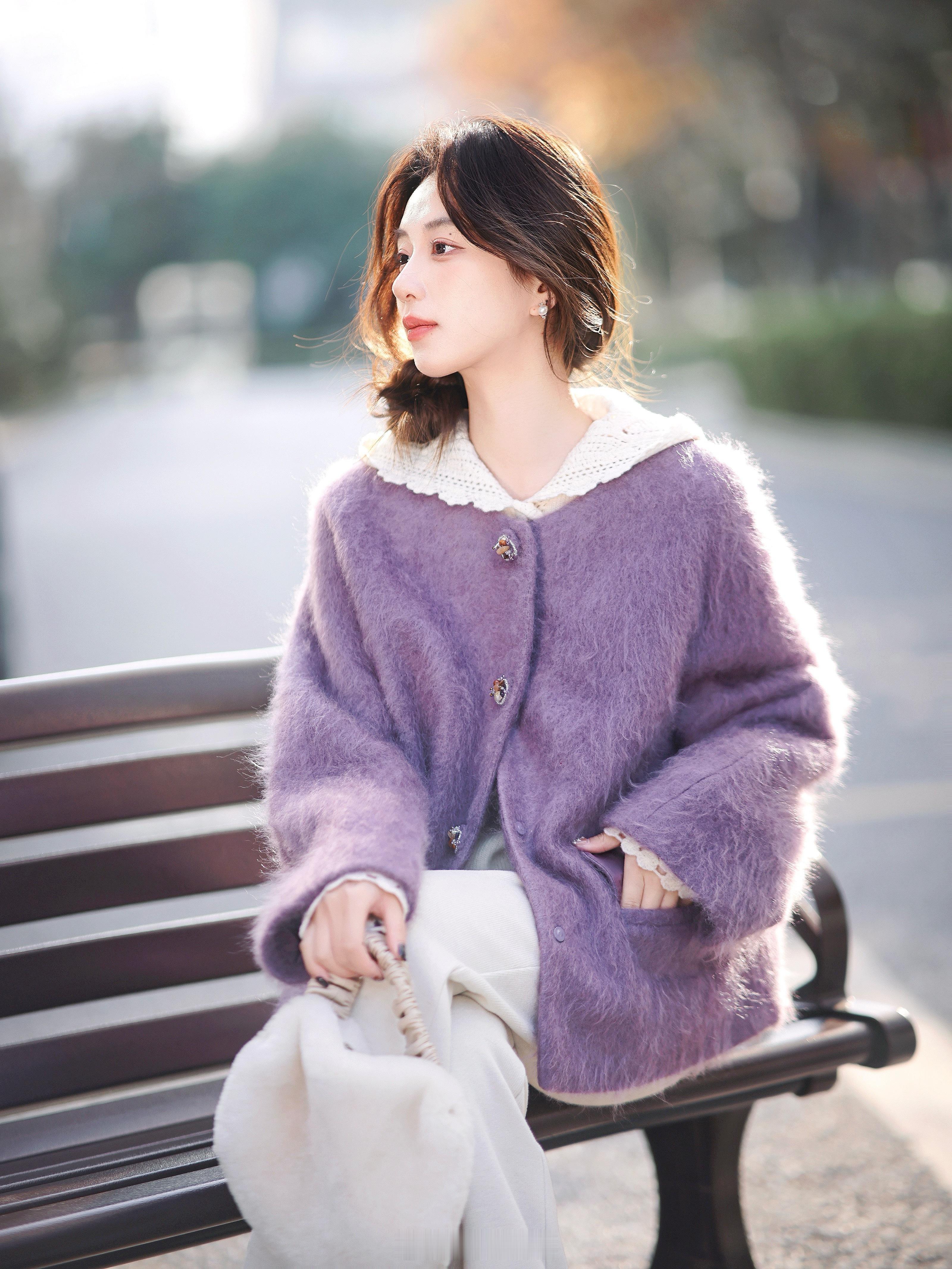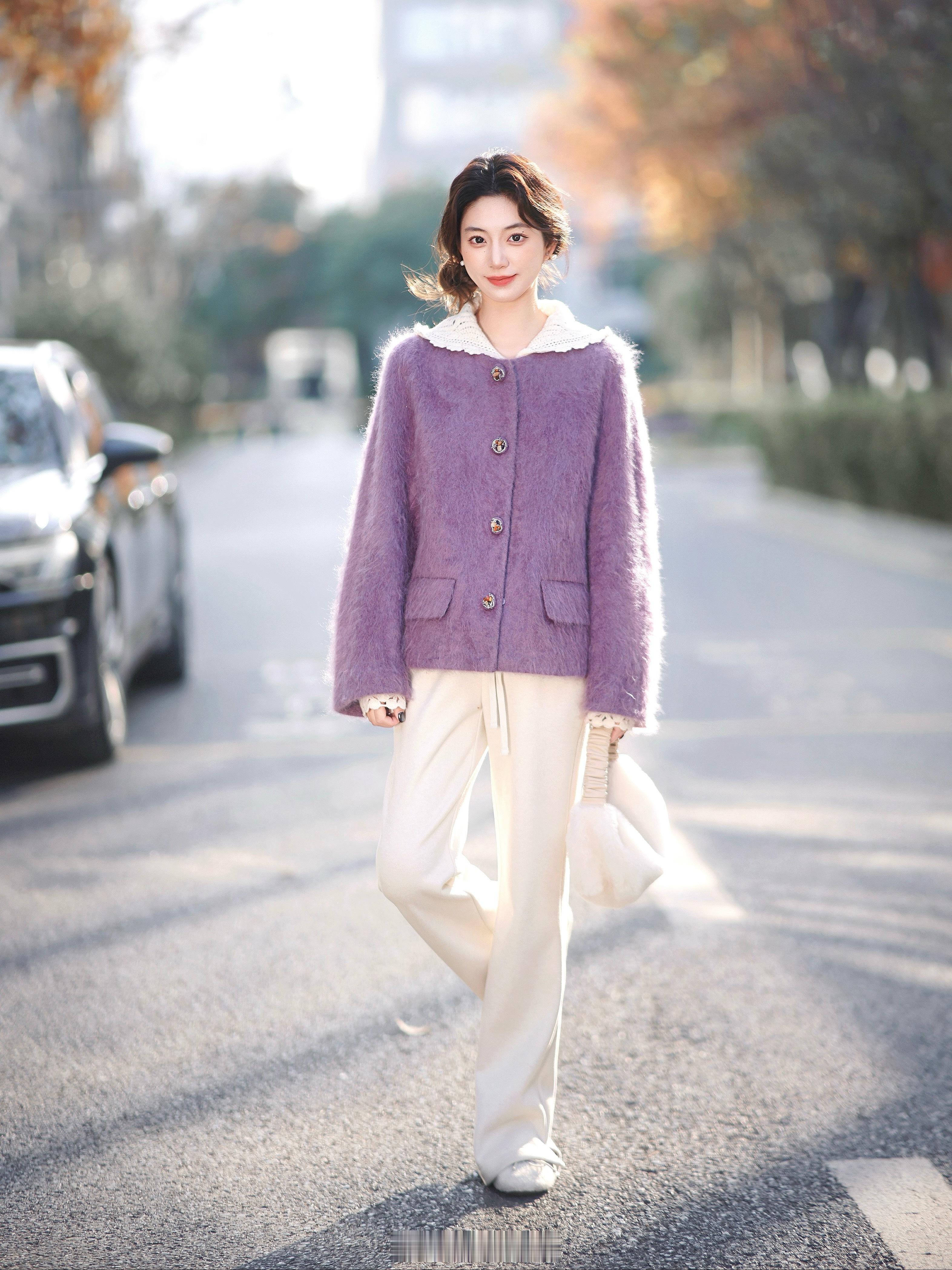 “紫微星”拉绒大衣真美到无法形容啊!羊毛+羊绒材质堪比皮草的光泽绒毛 轻盈暖和这次立体扣有宝注意到吗 精致点睛 很piu 亮~
