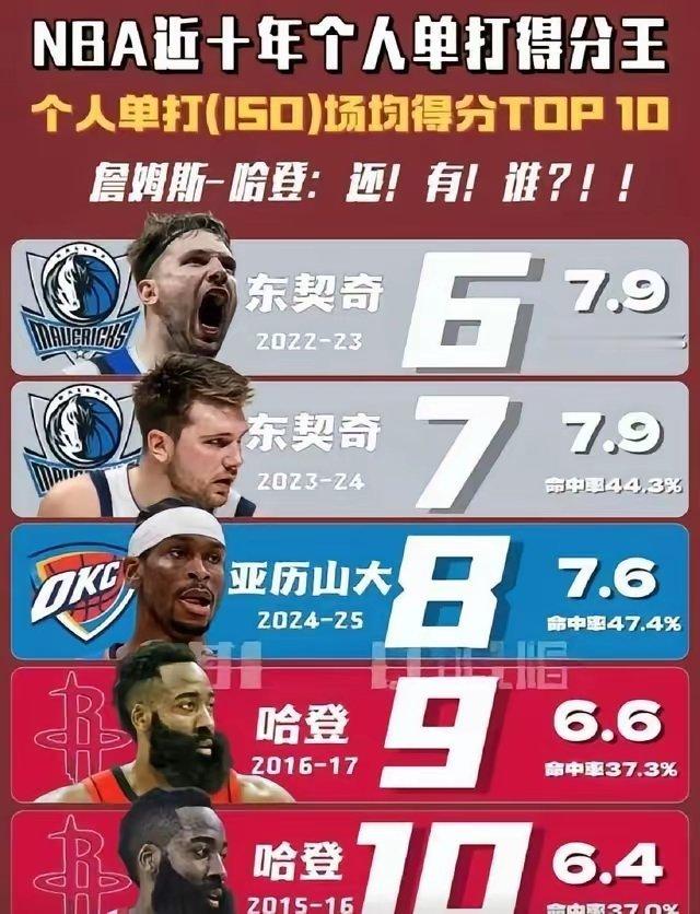 哈登的单打技术在联盟是顶级的哈登巅峰赛季2018-2019场均单打得分18.1东契奇最高单打得分才7.9亚历山大2024-2025赛季最高单打得分才7.6这样对比,就知道哈登单打有多么历害了。哈登的单打利用独创的后撤步三分,欧洲步过人上篮,利用规则制造对手犯规罚球得分。他丰富的单打得分手段令防守方十分头疼!