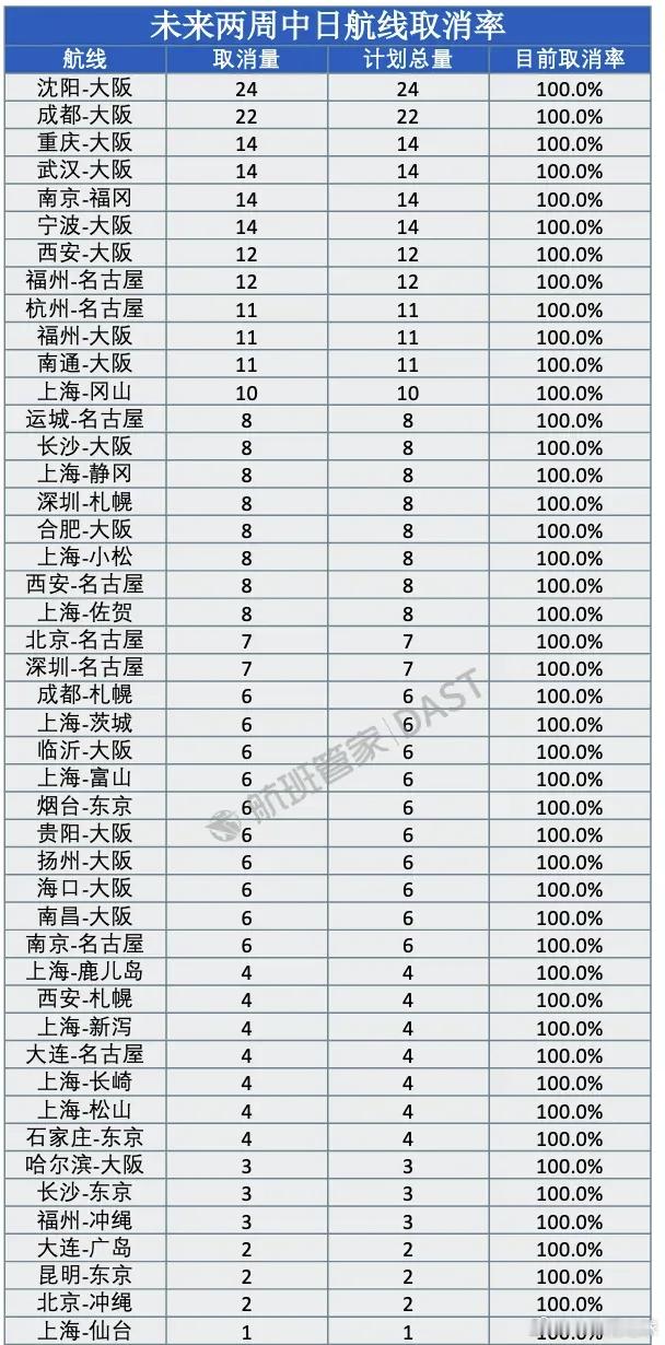 根据航班管家数据,未来两周有46条中日航线已取消全部航班。截至2025年12月22日,2026年1月中国大陆赴日航班取消量已达2195班次,航班取消率为40.4%。中国赴日航班数量大幅削减中日关系
