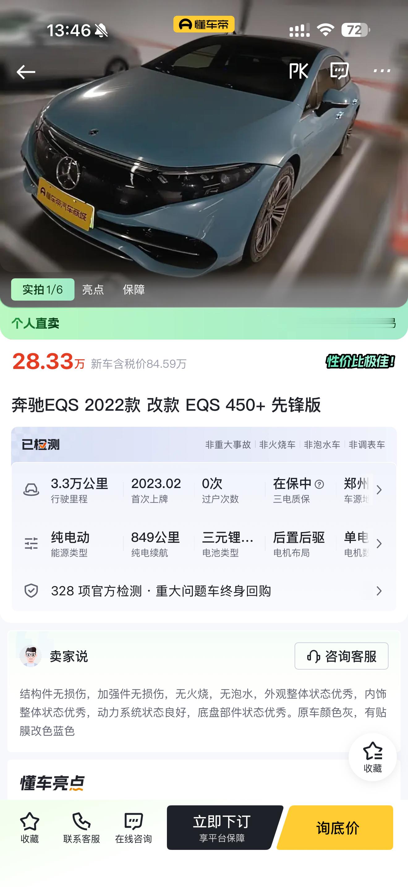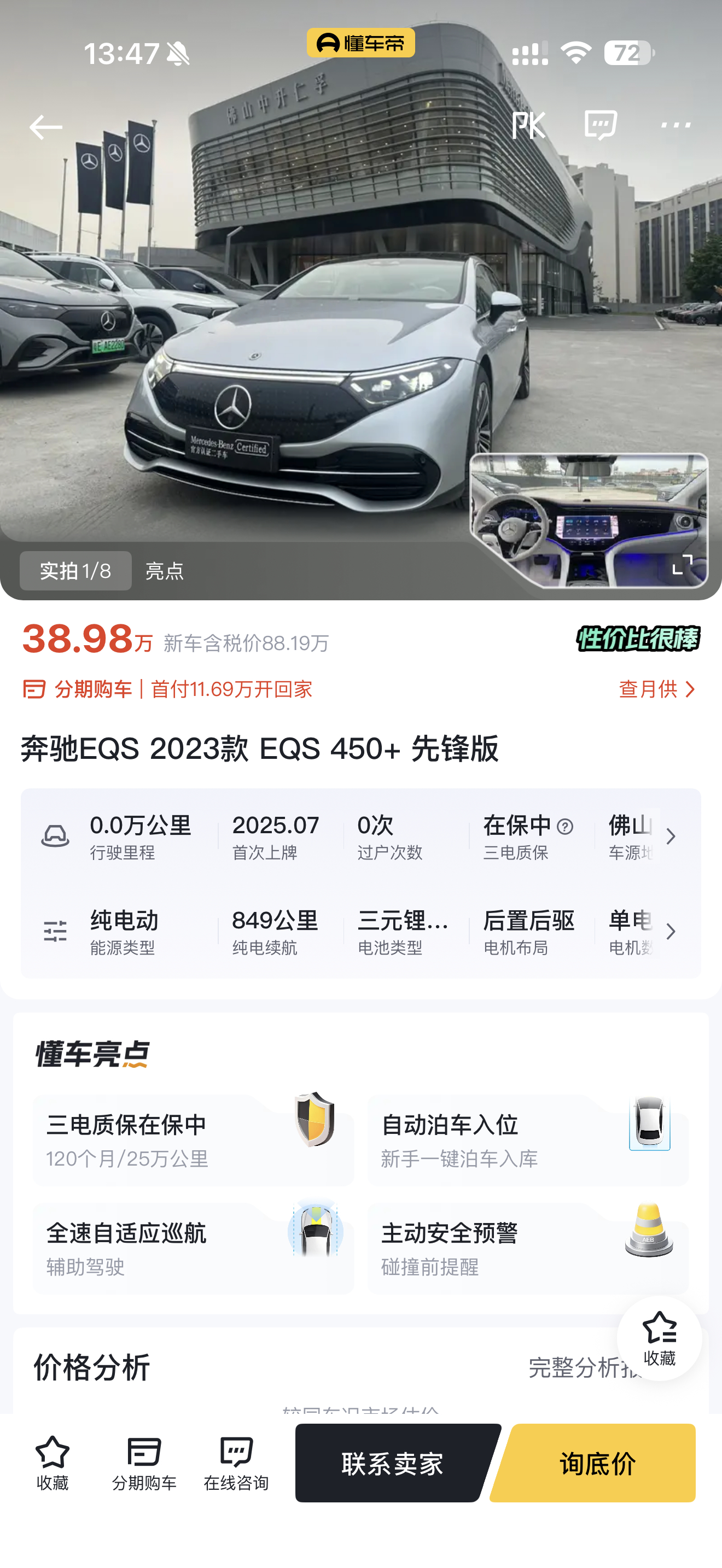 过年了如果想买德系豪华新能源二手车不防看看奔驰EQS22款450+,3.3万公里,现在二手28.33万相比新车的84万,这幅度,有点香!23款的450+先锋版0公里也只需要39万,注意是0公里,25年7月才上牌。。。。不过听说350的二手价格更香,有了解的朋友吗?