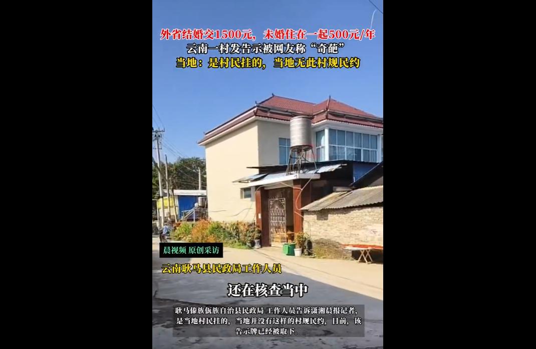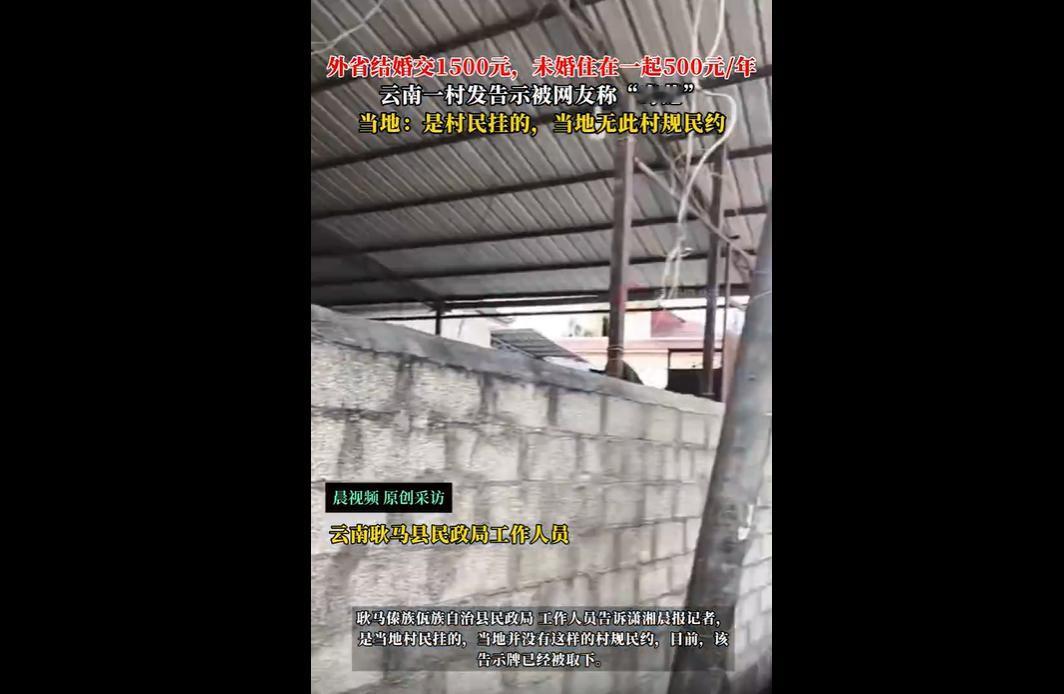 云南临沧有个村子贴了张超奇葩的罚款告示,连外省结婚、未婚同居都要罚钱,一下子引发大家热议。 官方回应说这是村民小组自己贴的,没报备也不算正规村规,已经撤了,还明确没有禁止跨省结婚的规定。 这张奇葩告示看着离谱,其实最坑的是当地村民! 就说跨省结婚要罚钱,这不是明着不让大家自由找对象吗? 还有夫妻吵架、未婚同居都要罚,连自家私事都要管,村小组也太把自己当回事了——它压根就没权力罚款啊! 官方说“村民自己贴的”,这话听着就敷衍,监管不到位才让这种破规矩冒出来。 对村民来说,村规民约是为了让日子好过,不是给生活添堵的。这种乱罚款的“土政策”,不光侵犯大家的权利,还寒了心。 关键得查清楚,这告示贴了这么久,有没有真的罚过钱? 罚的钱去哪了?不能光撤了就完事。 另外也得给村干部补补法律课,别再瞎定规矩。 基层自治是为了服务村民,不是折腾村民,守住法律底线,大家的日子才能真踏实。