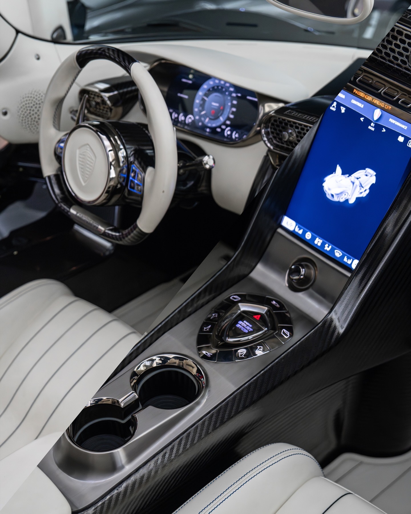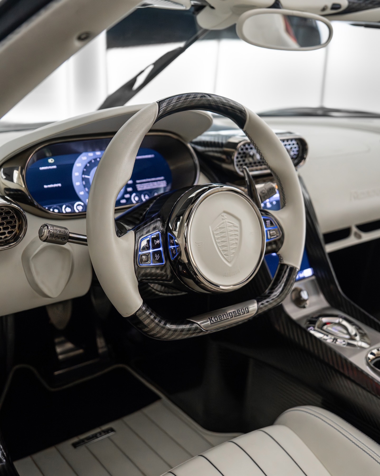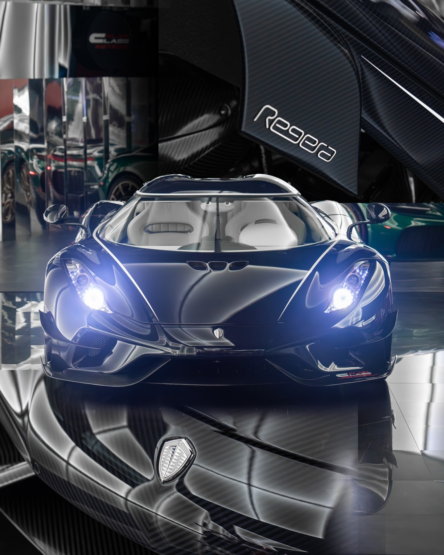 Car时尚 科尼赛克Regera雷盖拉雷盖拉的设计旨在与众不同。它采用了一台单速直接驱动系统取代了传统的变速箱,与一台双涡轮增压V8发动机和电动机协同工作,提供平稳、不间断的加速。全车采用蓝色碳纤维车身,内饰以雪地皮革装饰,这是一款以创新而非传统定义的超跑。• 年份型号:2019• 行驶里程:801公里• 规格:GCCRegera豪车超跑老纪侃车