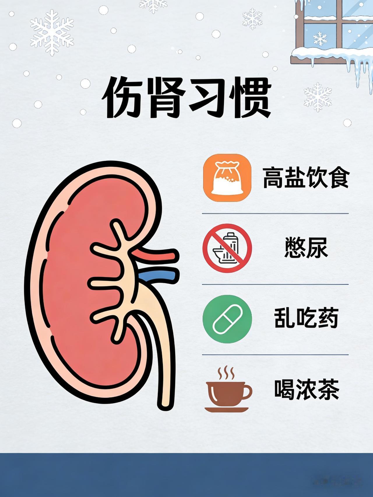 冬季肾衰风险增?医生告诫 4 个伤肾习惯 肾衰离我们有多近?医生紧急提醒:天冷宁打牌消遣,也别碰这4大“伤肾雷区” 近年来,肾衰竭的发病率和死亡率在我国持续攀升,尤其在寒冷季节,这一严峻形势愈发凸显。据相关统计数据显示,冬季肾衰竭患者的住院率和死亡率相较于其他季节均有明显增加。医生紧急发出警示:在寒冷天气里,宁可悠闲地打牌消遣,也别轻易踏入以下4大“伤肾雷区”,以免让肾脏健康岌岌可危。 ------ 忽视保暖频繁感冒,肾脏“防线”摇摇欲坠 冬季气温犹如过山车般剧烈变化,肾病患者本就脆弱的免疫系统更是难以招架。一次看似平常的感冒,却可能成为引发身体炎症反应的“导火索”,进而对肾脏发起猛烈攻击。以链球菌感染为例,它极易诱发急性肾小球肾炎,患者会出现蛋白尿、血尿等症状,肾脏功能在短时间内急剧恶化。医生建议,肾病患者在冬季务必做好全方位保暖措施,尤其是腹部和下肢这两个关键部位,要像守护“命门”一样精心呵护。同时,尽量避免前往人员密集、空气污浊的场所,降低感染风险。一旦不幸感冒,切不可自行硬扛,应及时前往医院就诊,在专业医生的指导下进行治疗。 高盐高蛋白饮食,肾脏“不堪重负” 冬季,热气腾腾的火锅、香气四溢的腌制食品成为了餐桌上的“常客”。然而,这些美食背后却隐藏着巨大的健康隐患。高盐饮食会导致水钠潴留,使血压如同脱缰的野马般升高,进而对肾小球造成严重损伤。而过量摄入高蛋白食物,如羊肉、牛肉等,会增加肾脏的代谢负担,导致尿素氮和肌酐等代谢废物在体内堆积,进一步损害肾脏功能。医生提醒,肾病患者应严格遵循低盐、低蛋白饮食原则,每日盐摄入量应控制在6克以内。在蛋白质的选择上,应优先选择优质蛋白,如瘦肉、鱼类、蛋类等,并合理控制摄入量,以减轻肾脏的代谢压力。 自行用药叠加伤肾,后果“不堪设想” 冬季感冒频发,部分患者为了图方便、省时间,会自行购买感冒药、止痛药或抗生素服用。但他们不知道的是,许多药物都具有一定的肾毒性,如布洛芬、对乙酰氨基酚、庆大霉素等。长期或过量使用这些药物,就像在肾脏里埋下了一颗“定时炸弹”,随时可能引发药物性肾损伤,给肾脏带来不可逆转的伤害。医生强调,肾病患者用药必须严格遵医嘱,切不可自行随意增减药量或叠加用药。在用药前,务必仔细阅读药品说明书,了解药物的副作用和禁忌症,如有疑问应及时向医生咨询。 熬夜劳累作息紊乱,肾脏“苦不堪言” 冬季天黑得早,但部分人却依然沉迷于熬夜打牌、刷手机等娱乐活动,导致睡眠严重不足。研究表明,睡眠时间少于6小时的人群,慢性肾病的发生率会显著升高。肾脏在人体深度睡眠时会增加血流量,促进代谢产物的排出和细胞的修复。长期熬夜会扰乱人体的生物钟,影响肾上腺皮质激素的正常分泌,进而干扰肾脏的正常代谢功能。医生建议,肾病患者应养成良好的作息习惯,保证每日7 - 8小时的充足睡眠。晚上尽量在11点前入睡,让肾脏在宁静的夜晚得到充分的休息和调养。 肾脏健康关乎我们的生命质量和寿命长短。在这个寒冷的季节里,让我们远离这4大“伤肾雷区”,用科学的生活方式守护肾脏健康,让生命之花在寒冬中依然绽放绚丽光彩。