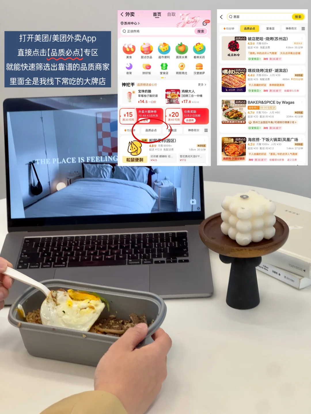 想get同款加班治愈餐很简单:打开美团或美团外卖App,下滑直接点击【品质必点】标签,就能快速筛选出靠谱的高品质商家。里面全是我线下常吃的大牌店,不用费脑挑选,就能避开踩雷,轻松吃到合心意的美味。