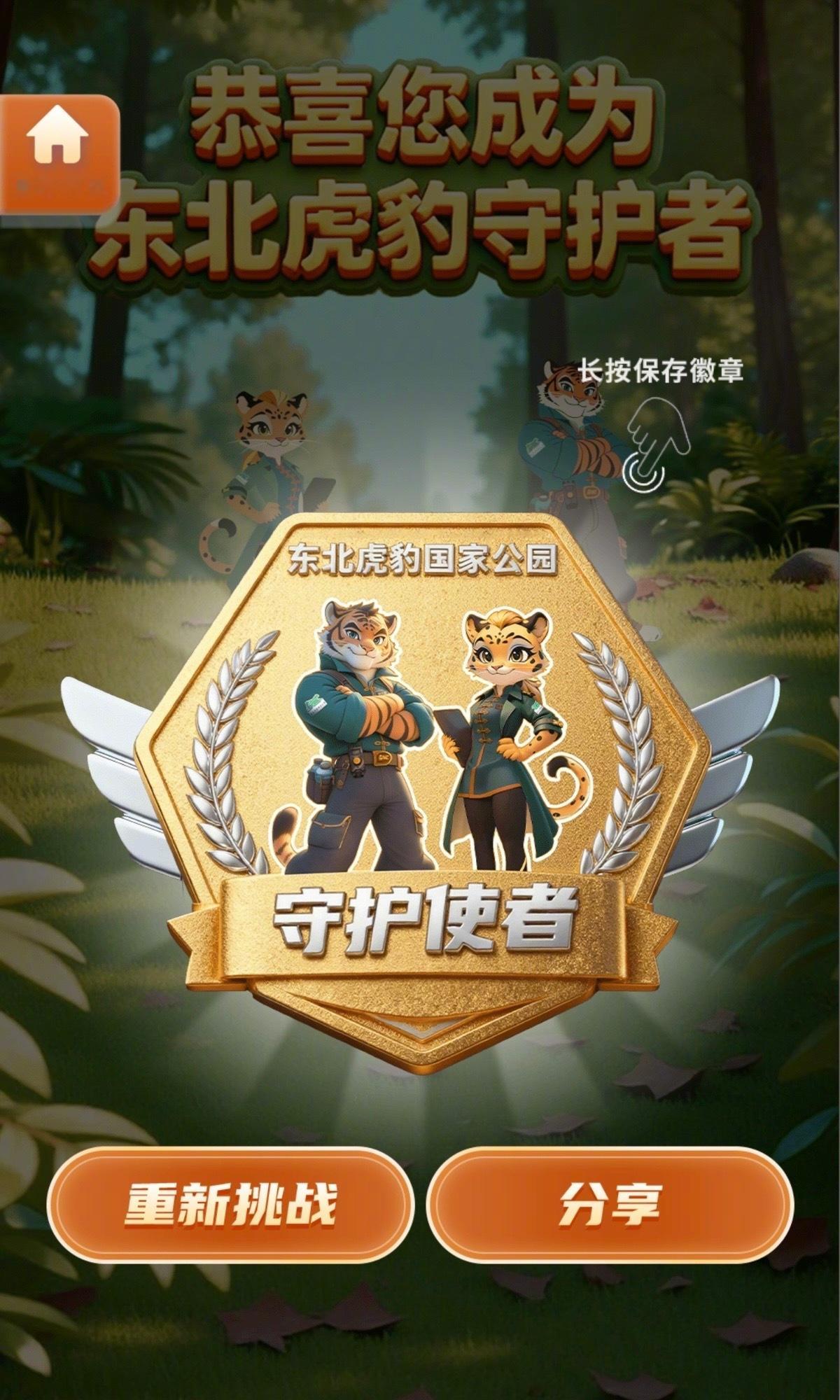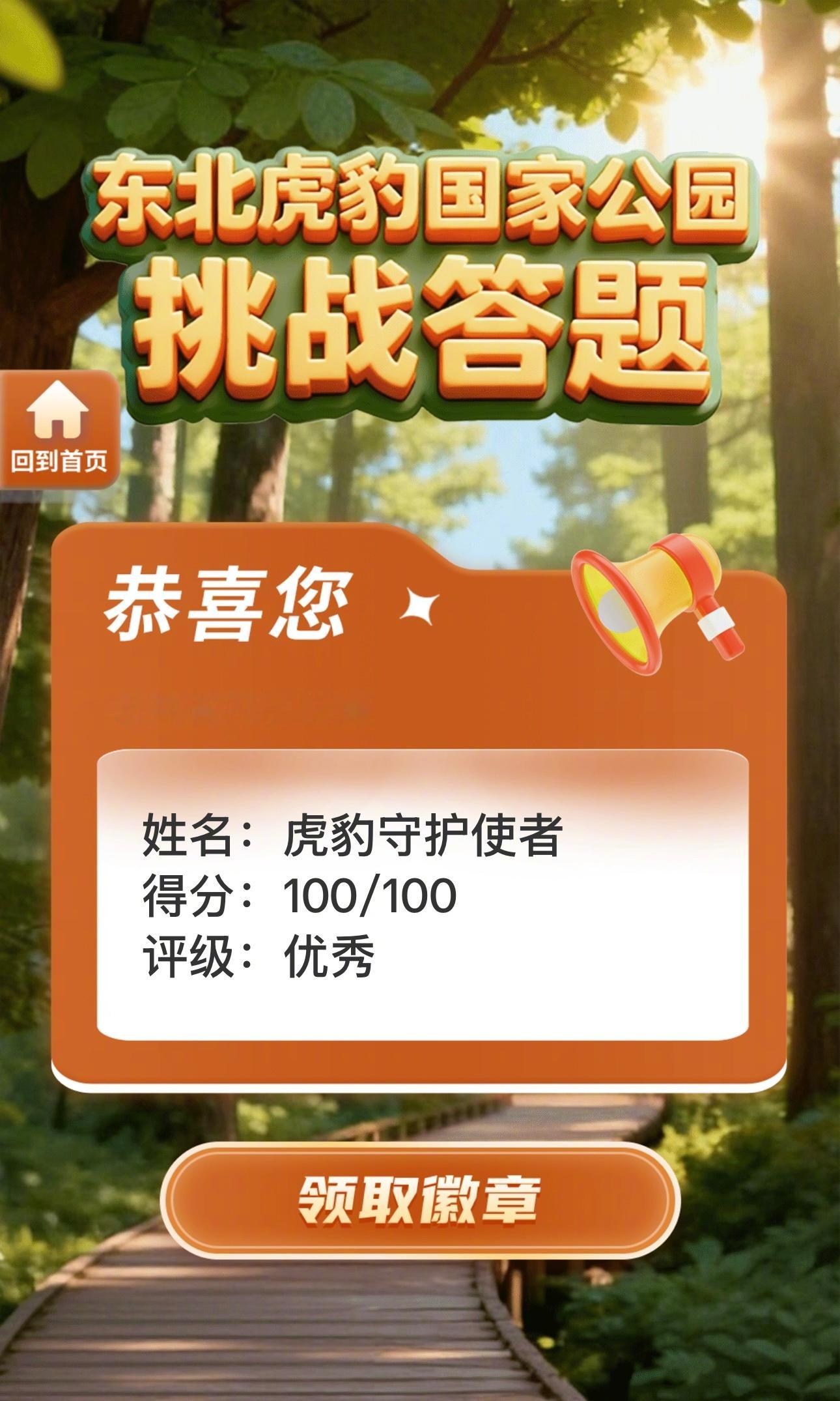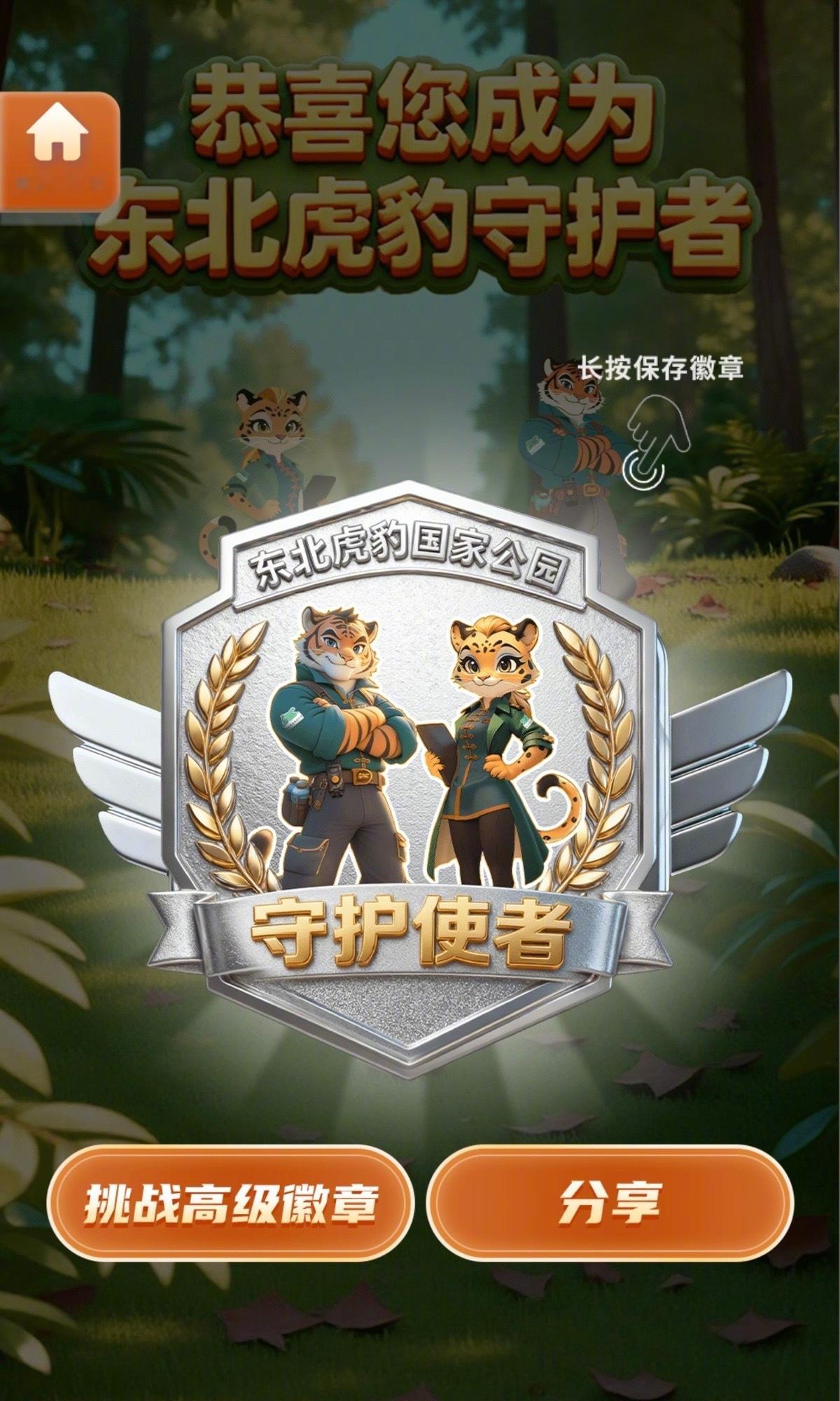 【📖“寻迹虎豹,知识探秘”——科普互动H5重磅来袭】一起探秘虎豹公园,解锁虎豹知识!这里不仅有多元的虎豹科普、超多虎豹公园的生态亮点,还有硬核的答题挑战。完整答题,有机会领取“守护使者”徽章哦!快来拿下你的专属荣誉吧~虎文炳豹文蔚带你了解虎豹公园
