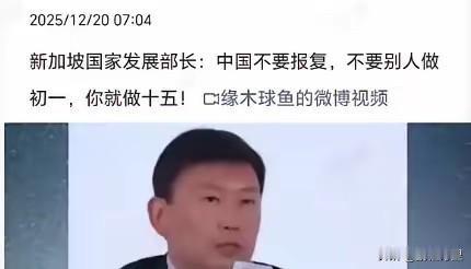 前段时间新加坡总统刚说过这话,发展部长又来,上至总统总理,下至部长专家学者等,一个个出来秀下限,新加坡越来越印度化,在中国面前有一种迷之自信,认为它们可以教中国做事,也可能是为了维护主子发声,不管怎样都是不自量力