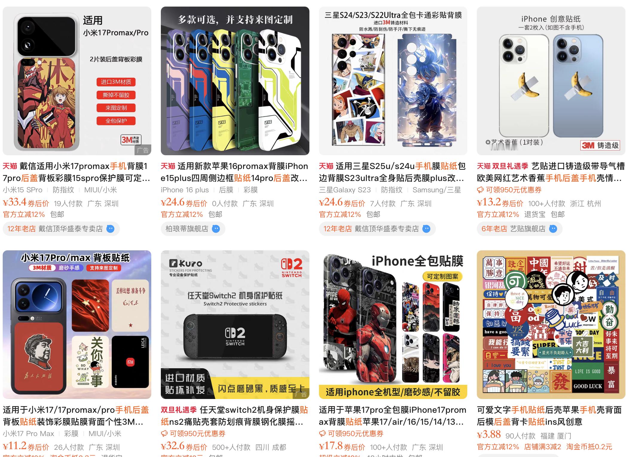 我不是很理解,为什么会喜欢在手机后盖上贴一些贴纸?在某宝上看销量还不错,后来才知道有痛机改造这个说法,就像汽车的彩绘一样,都喜欢折腾,也许压力太大需要情感寄托...你的手机后盖有彩绘贴纸吗?