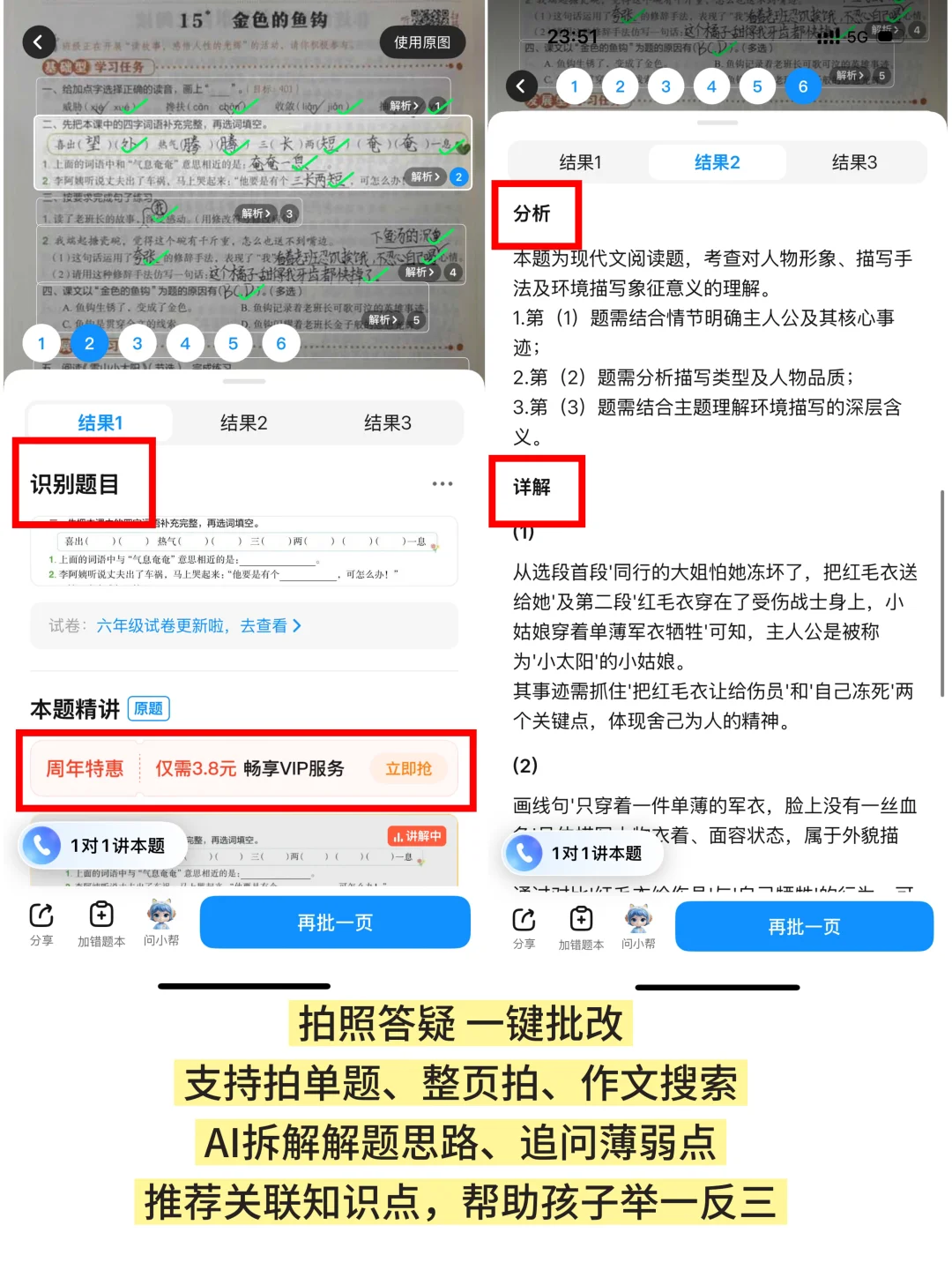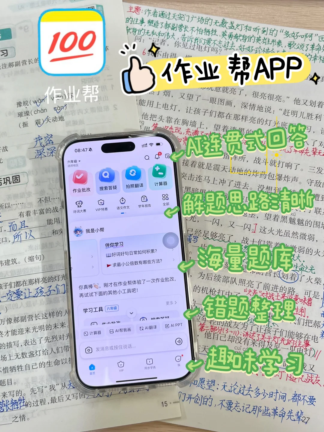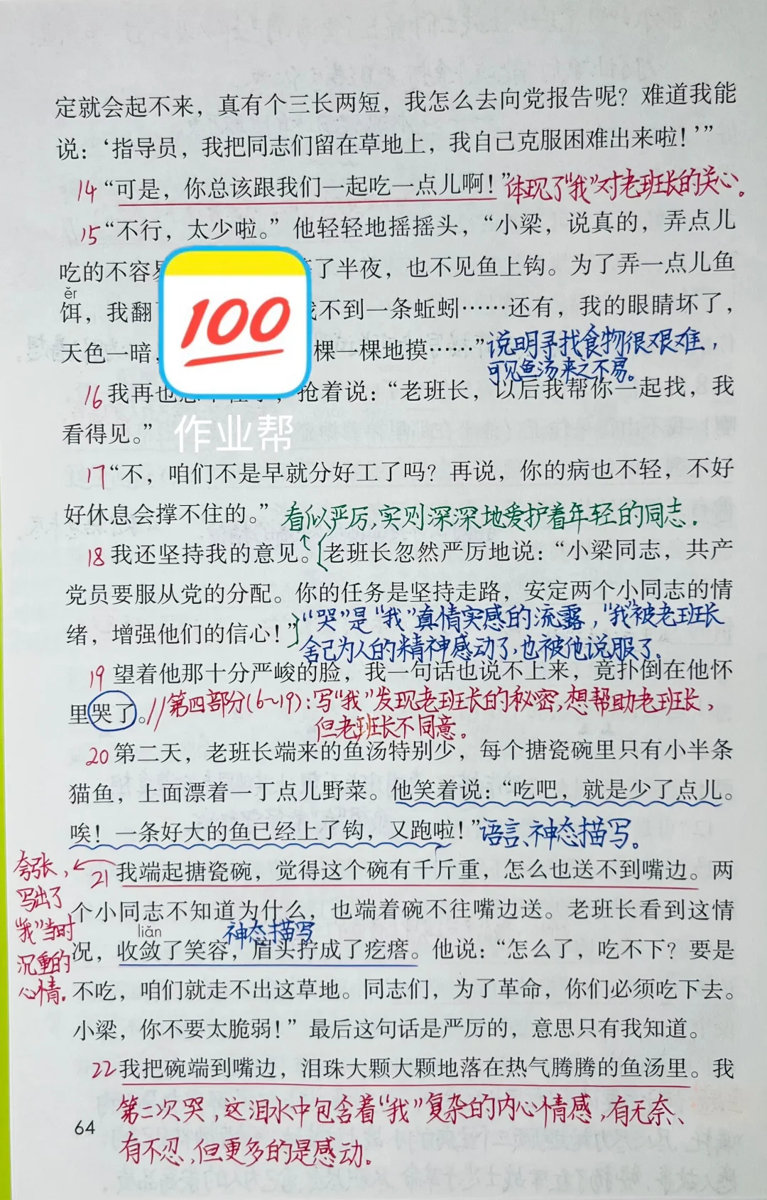 【学习目标】 1.能结合小说的主要情节,体会老班长的人物形象。 2.能找到描写对话和心理的语句,体会这些描写对表现人物形象的作用。 ~~~~~~ 学完第四单元,期中考试也要来了,每年期中前都心疼两类孩子:一类埋头抄错题,半小时没搞定一道;一类刷了一堆卷,还在“阅读答不到点上”“概括段意”等问题上栽跟头。建议试试作业帮app,找对方法比耗时间管用10倍,中等生也能稳住优势! ✨1.AI智能答疑,一键批改作业。 操作灵活,支持实时拍照,也能从相册上传图片搜题,还能“求助学霸”获取人工解答。作业批改不仅有详细答案,还有解题思路,教会孩子如何思考才是关键。 ✨2.核心试卷功能(覆盖“找-练-改-用”全场景) 拥有小初高多学段多学科的海量试卷资源,可以在线逐题作答也能下载PDF离线做,做完及时订正答案,加入错题本,还能生成举一反三的练习题,学习效率大大提高。 ✨3. 拥有各种实用学习工具 有适合小学生趣味互动的古诗词大赛、口算PK、成语PK等多种学习小游戏,把枯燥乏味的知识点变成有趣的动画、生动的故事 ,孩子在轻松愉快的氛围中就能掌握知识。特别是学习英语和语文时,通过有趣的动画场景,孩子一下子就能记住词语和单词,学习热情高涨! ☀️老师的使用小提醒 建议每天花20分钟:① 拍题整理当天错题 ② 刷对应考点精练 ③ 看1个解题技巧视频。坚持一周,孩子做题思路明显更清晰了。 而且最近有福利哦!在天猫旗舰店价格更优惠[鼓掌R] 期中是“查缺补漏”的体检,不是定输赢的战场。用对工具帮孩子轻装上阵,比啥都强!等着你们的好消息~💪