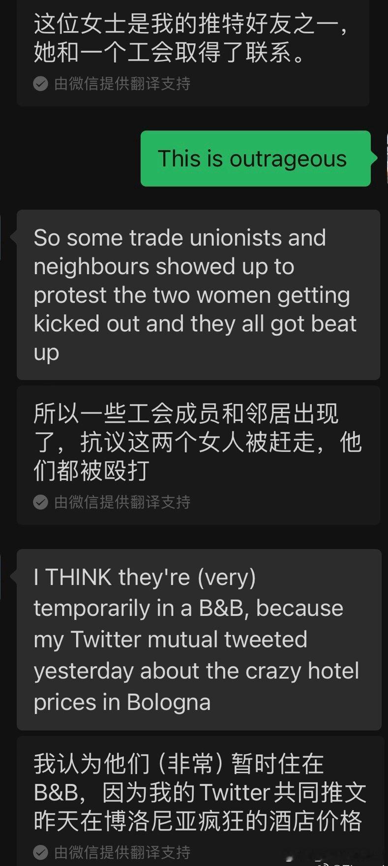 网友讨论美国存在斩杀线很多没出过国却无条件热爱西方的国人,爱的不过是他们幻想中那种好吃懒做没有技能不会外语依然可以过好日子的白日梦罢了。牢A只是揭开了西式谎言的一角,很多中国网民就觉得受不了觉得匪夷所思。那是因为你所在的中国是真的在努力为人民服务,所有虽有不足但也在改进,而某些西方国家是不拿穷人当人看的。今天举个意大利的例子,看看因为房租奇高而无法找到居所的老人是如何被全副武装的警察赶出家门的。以下故事来源于我的意大利朋友。下述内容为朋友的叙述:一位女生和年迈的母亲还有家里的猫居住在博洛尼亚。博洛尼亚学生多地方小,房租不低,而意大利的平均薪资在欧洲并不算高。女生和母亲租了这套房子后按时付房租,从未逾期。前段时间房主通知她们不再续租,所以她们开始寻找新的住所。但因为租房市场竞争激烈,她们找到的房子不是价格太高负担不起,就是刚找到合适的就被抢走了,一直没有进展。到了要搬家的那一天,来了警察。根据朋友的叙述,警察直接进门把女孩,她的母亲和猫丢到街上。路人和邻居看不过去和警察理论也挨了打。我看了一下她发来的图,就挺感慨的。本该为人民服务的警察揍了人民,还一下来了这么多,不知道的还以为是抓罪犯呢。朋友说意大利以前有"Case popolari",类似于我们的廉租房,但这些年都没在修建了,原有的廉租房早都被抢完了。我感觉这样的事情若发生在中国,微博早就要炸开锅了。居有定所是社会安定的基石之一,每个国家都在想法解决这个问题,但结果却不尽相同。我一直推荐朋友们看Evicted:Poverty and Profit in the American City这本书,作者通过社会学研究方法和纪实的写作方式讲述了被扫地出门的美国人贫苦的生活。中国人觉得赛博亡国的事情,西方人见怪不怪,因为这就是他们的日常。做这个比较并不是说我们就做得完美无缺。我们也有各种租房问题,但我们一直在努力解决问题,也的确有所进展。对西方滤镜过强的国人,还是要自己多走走多看看,不要总觉得西方什么都好