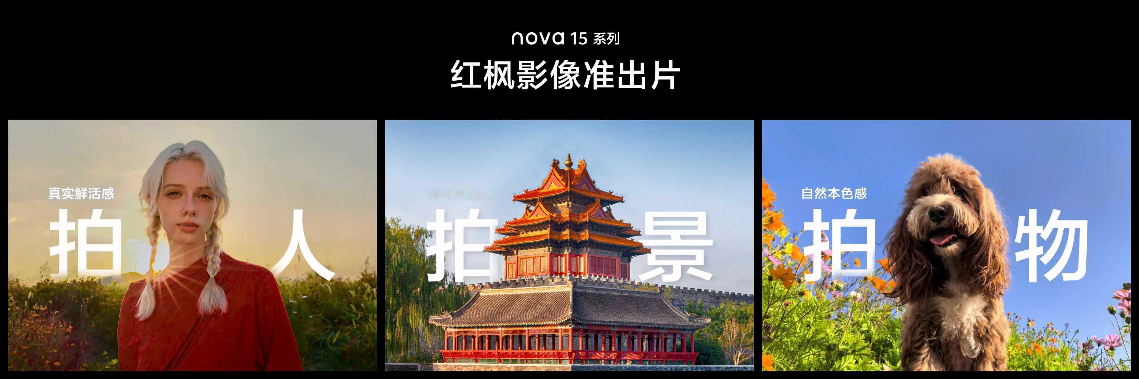 nova15真是放大招了,直接整了个前后双红枫系统,拍人拍景色彩都准得跟肉眼看见一样。特别是前置,居然用上了业界唯一的红枫镜头,还首发了一个能精准感知光线色彩的算法,自拍再也不怕颜色失真了。后置更是堆料狂魔,nova 15 Ultra一口气塞进四个5000万像素的RYYB镜头,从主摄到长焦再到超广角全是大底,还带可变光圈和防抖,远近明暗都能搞定,这配置真是怎么拍怎么出片。nova15首发搭载前置红枫镜头nova15首次升级至4个5000万镜头
